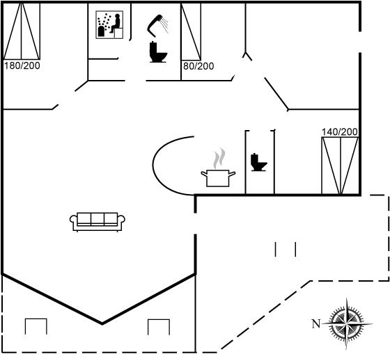 Der er i alt 3 soveværelser. Sovepladserne fordeler sig på: 4 sovepladser i dobbeltsenge. 1 soveplads i enkeltseng.