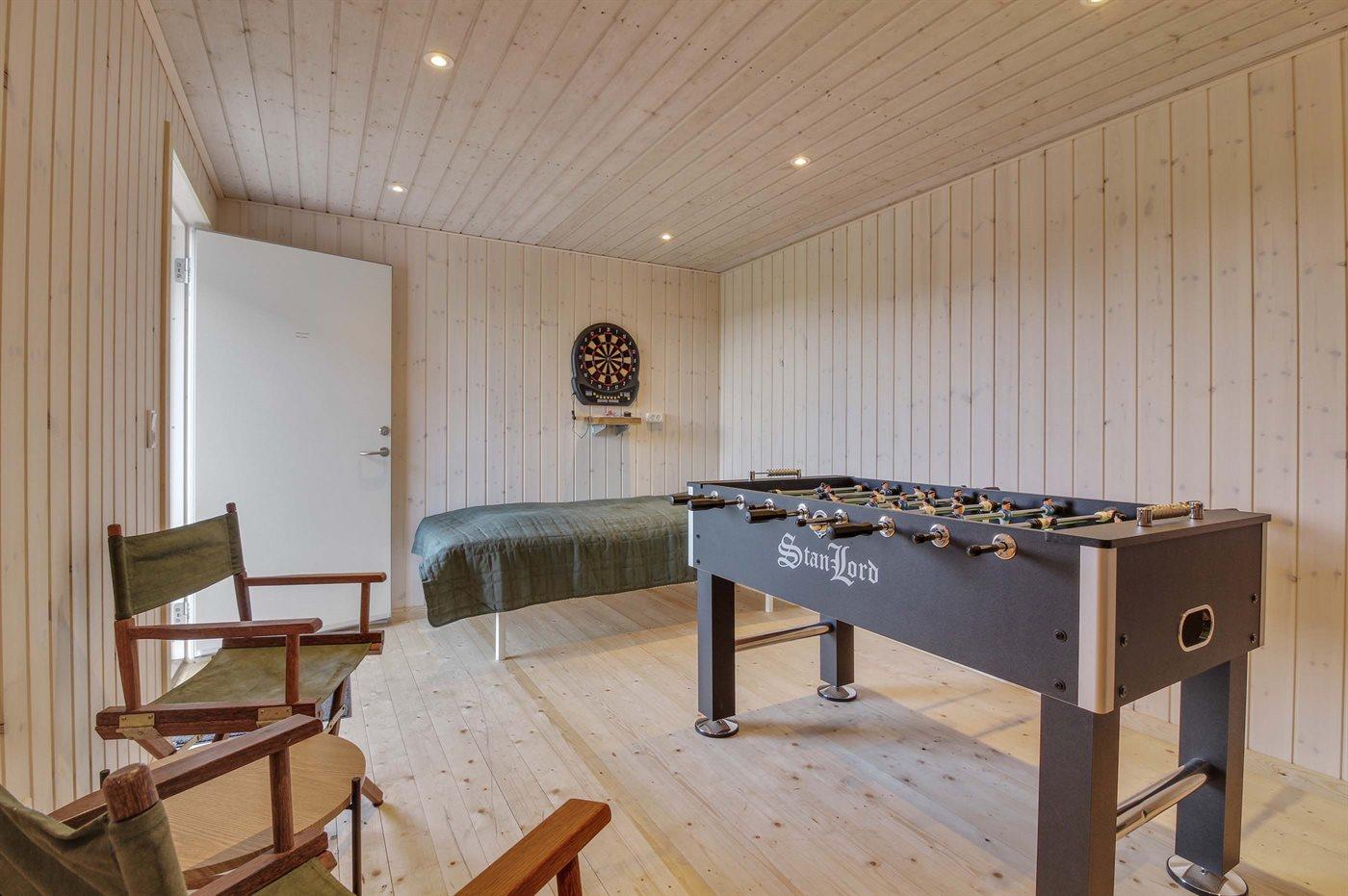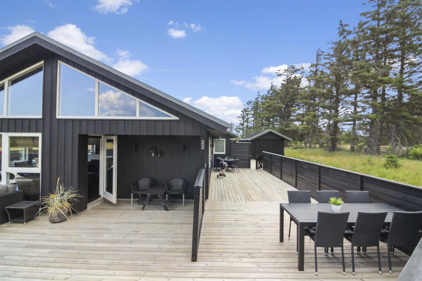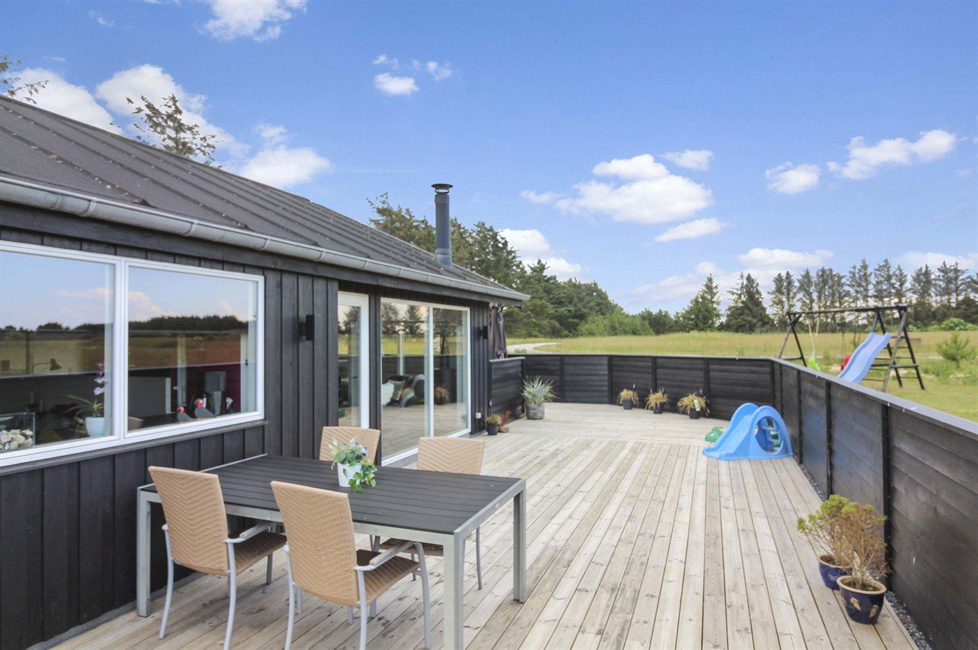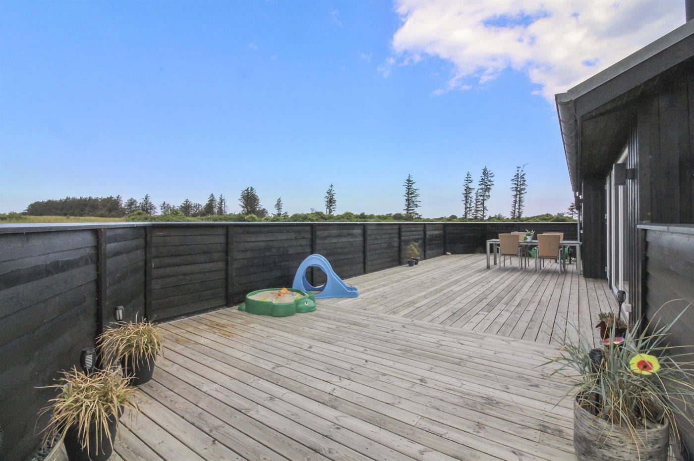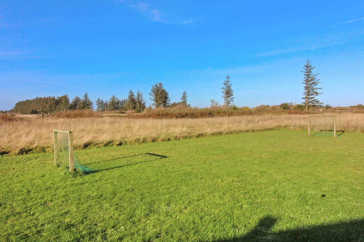 Ferieboligen er beliggende på en 2370 m² stor naturgrund. Der er 975 m til havet. Nærmeste forretning er beliggende i en afstand af 1600 m. Til ferieboligen hører i alt 124 m² lukket terrasse. Heraf er 4 m² overdækket. Der er redskabsrum. Gynge. Sandkasse. Fodboldmål. Der er 2 grill til rådighed. Der er installeret stik til opladning af elbil.