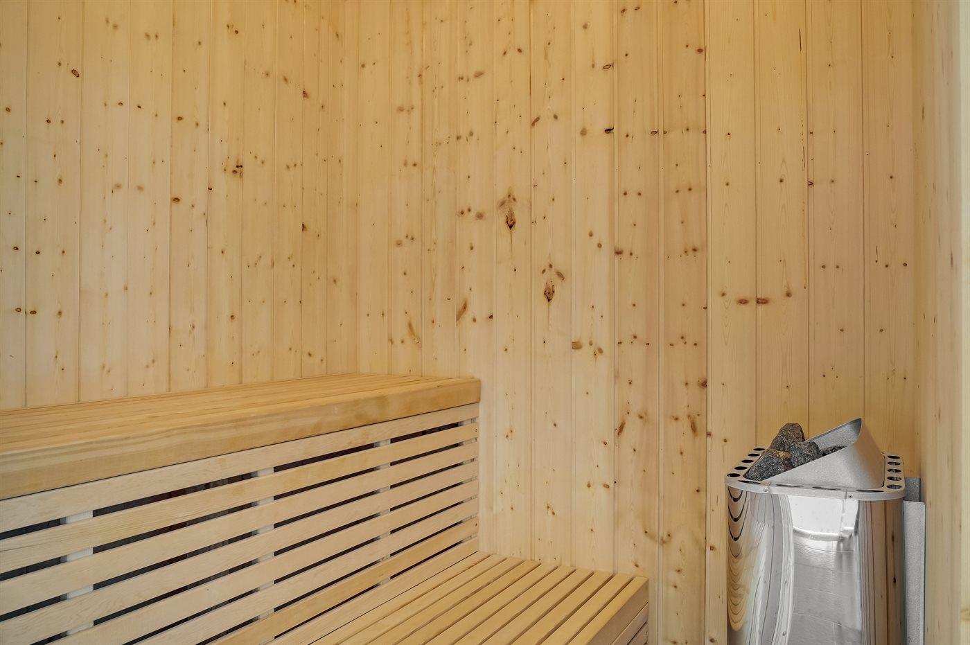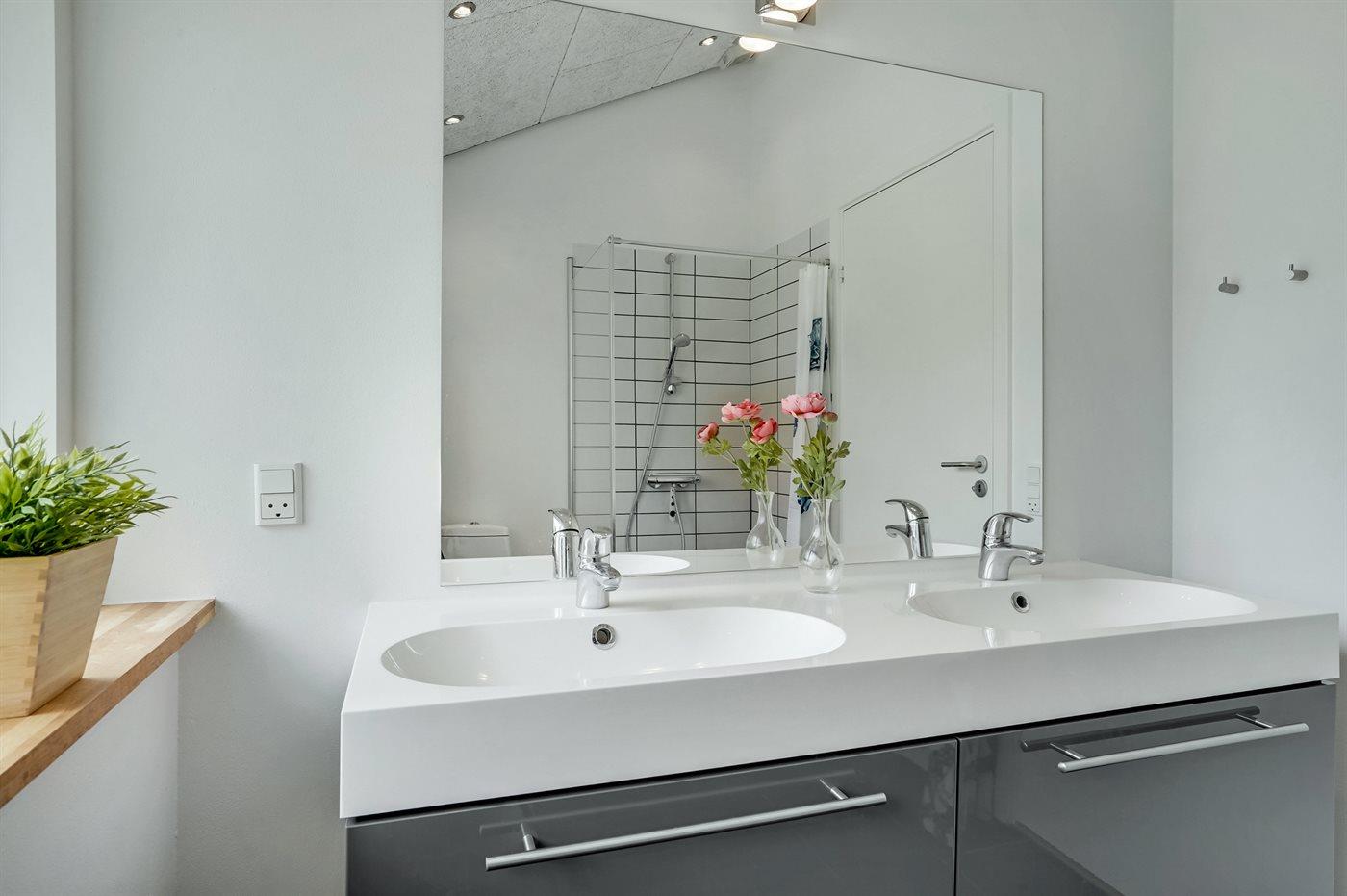 Der er 2 badeværelser med bruseniche og 2 toiletter, heraf 1 gæstetoilet. Der er gulvvarme på 2 badeværelser. Der er gulvvarme på gæstetoilettet. I saunaen er der mulighed for afslapning.