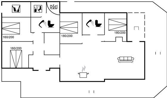 Der er i alt 4 soveværelser. Sovepladserne fordeler sig på: 8 sovepladser i dobbeltsenge. Derudover er der 1 stk. barneseng.