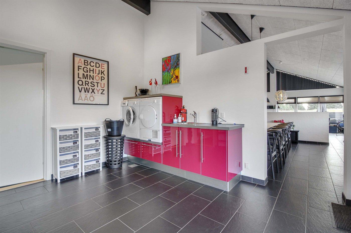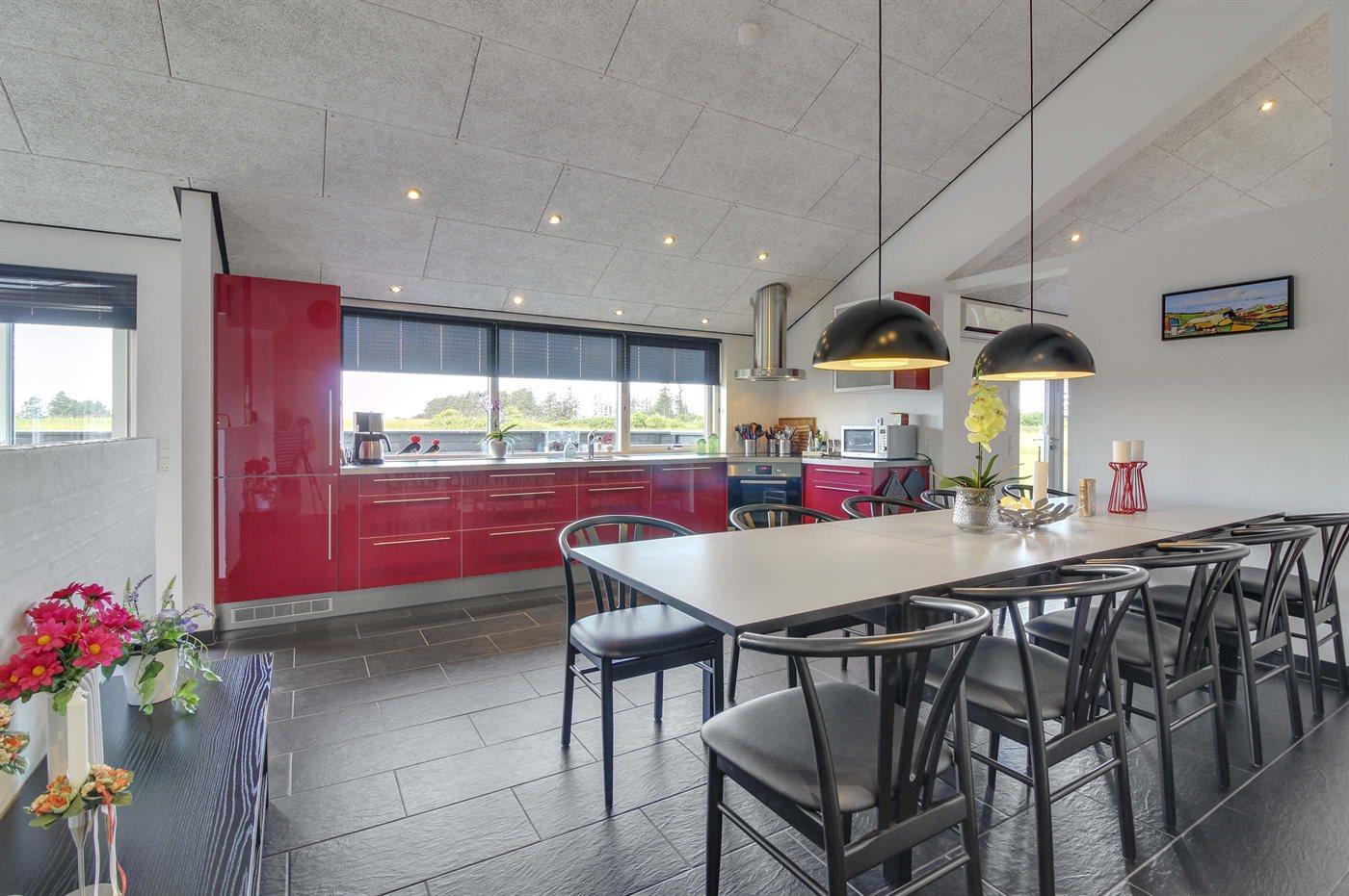 Køkkenet er udstyret med 1 køleskab. Der er 4 induktionskogeplader, varmluftovn, mikrobølgeovn samt opvaskemaskine Der er gulvvarme i køkkenet.