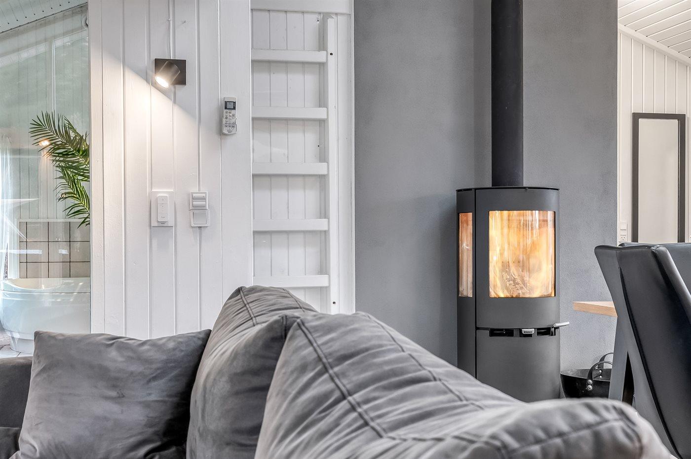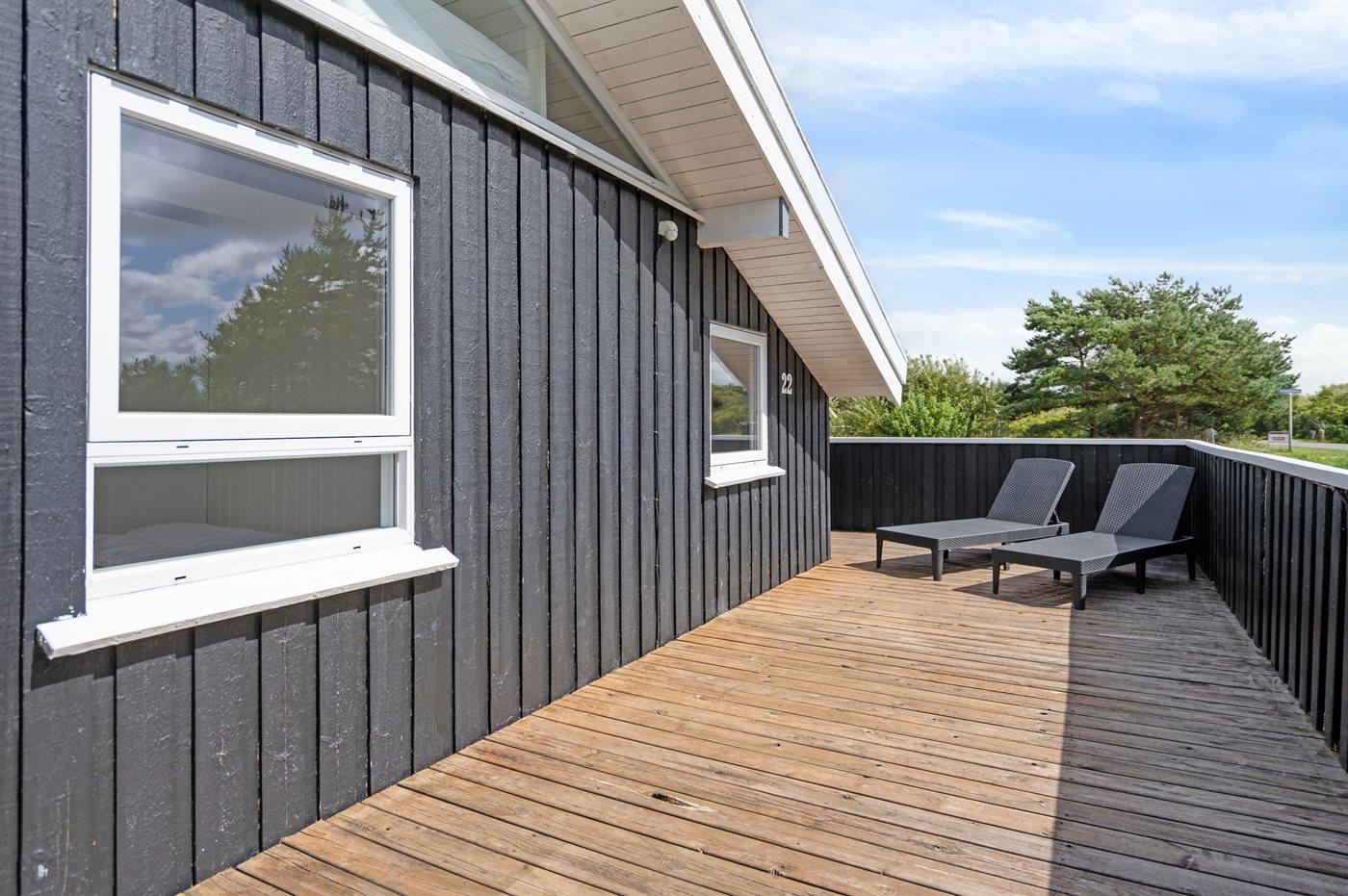 Ferieboligen er beliggende på en 1900 m² stor naturgrund. Der er 940 m til havet. Nærmeste forretning er beliggende i en afstand af 500 m. Til ferieboligen hører 65 m² lukket terrasse. Gynge. Der er installeret stik til opladning af elbil. Med 11 kW ladeeffekt. Parkering ved ferieboligen.