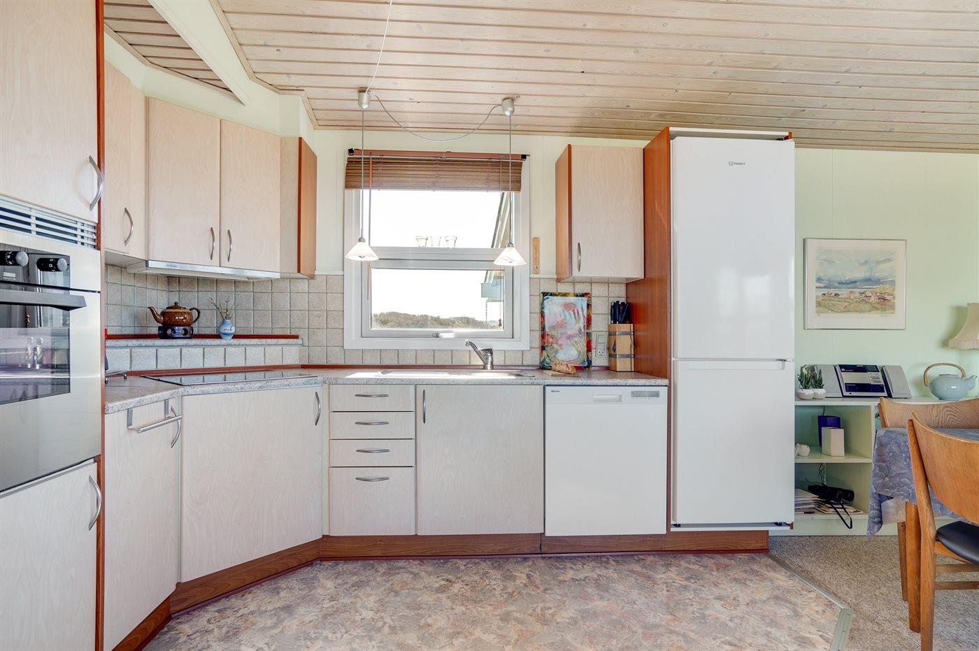 Køkkenet er udstyret med 1 køleskab. Der er 4 keramiske kogeplader, varmluftovn, mikrobølgeovn samt opvaskemaskine.