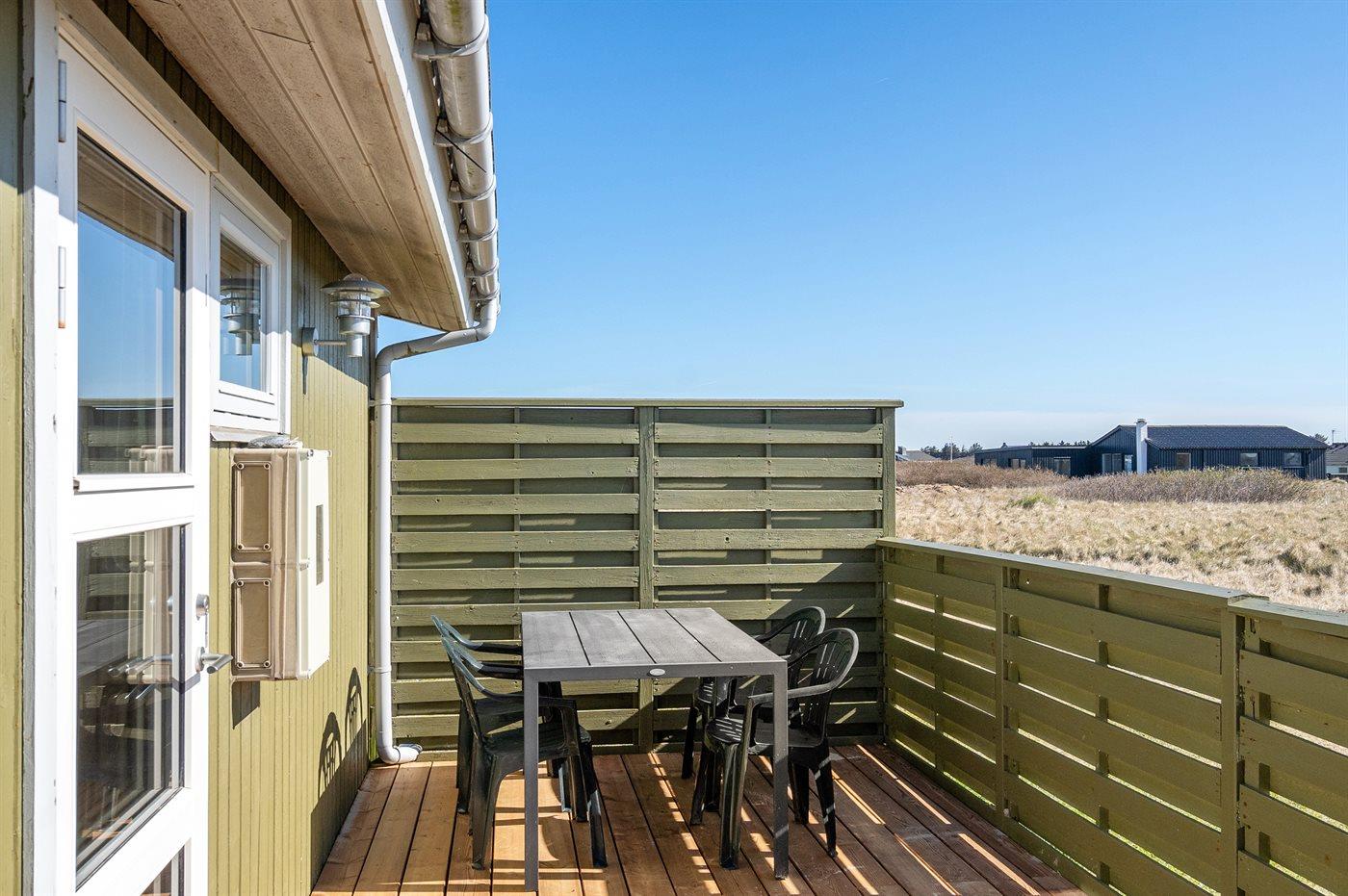 Ferieboligen er beliggende på en 1500 m² stor naturgrund. Der er 50 m til havet. Nærmeste forretning er beliggende i en afstand af 250 m. Til ferieboligen hører 30 m² terrasseareal. Desuden er der 12 m² overdækket terrasse. Parkering ved ferieboligen.