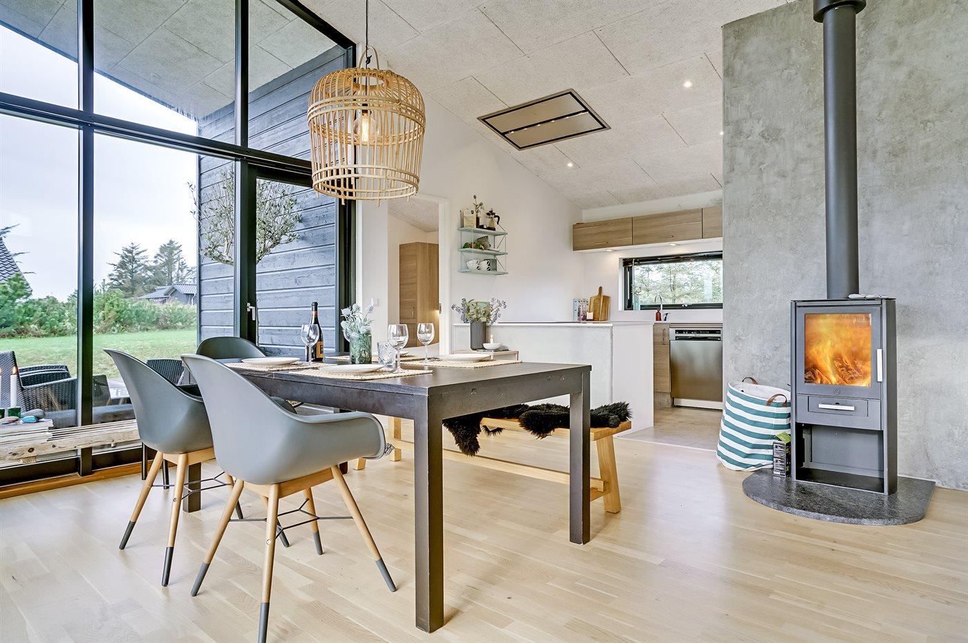 Sommerhuset egner sig til 6 personer samt 1 barn op til 3 år. 2 af sovepladserne er kun egnet til større børn (4-11 år). Ferieboligen er på 99 m² og er bygget i 2016. Det er ikke tilladt at medbringe husdyr. Ferieboligen er udstyret med energibesparende varmepumpe. Ferieboligen har vaskemaskine. Tørretumbler. Frysekapacitet på 90 liter. Der er desuden brændeovn. Til de små er der 1 stk. barnestol.