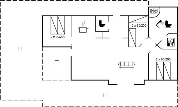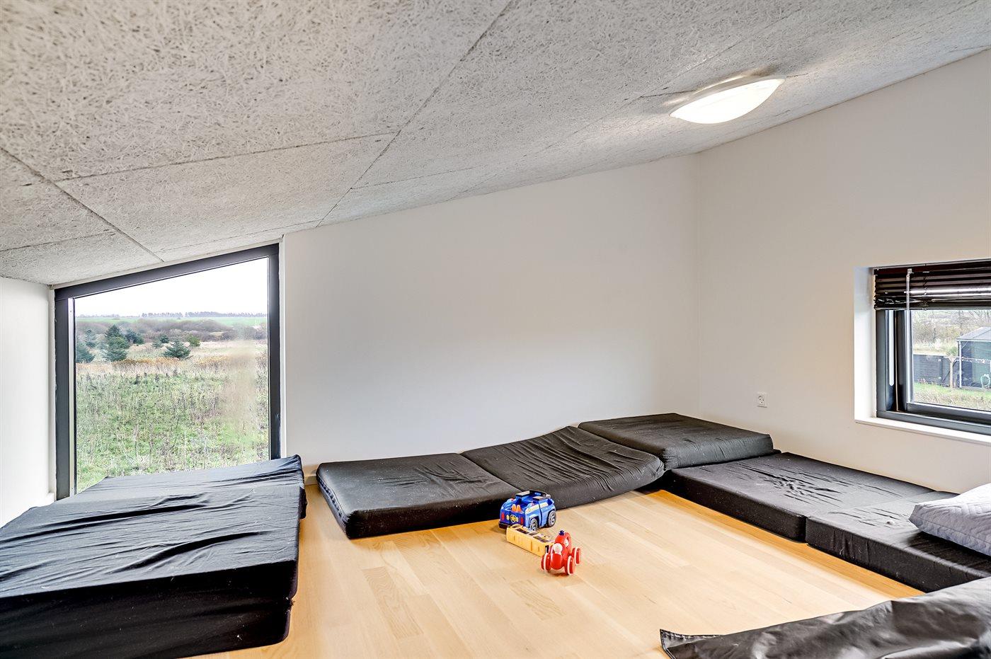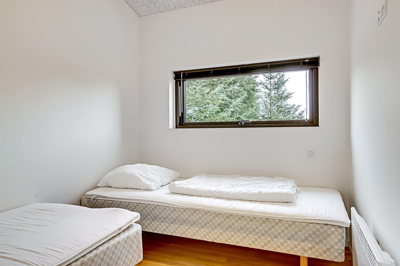 Der er i alt 3 soveværelser. Sovepladserne fordeler sig på: 4 sovepladser i dobbeltsenge. 2 sovepladser i enkeltsenge. Derudover er der 1 stk. barneseng.