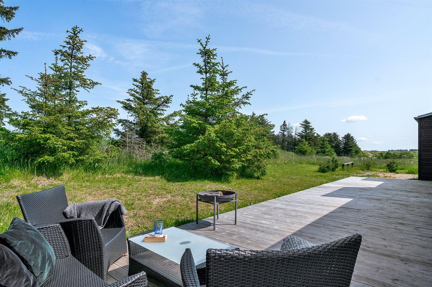Moderne sommerhus i Lønstrup med spa, sauna og stor terrasse på naturskøn grund.
