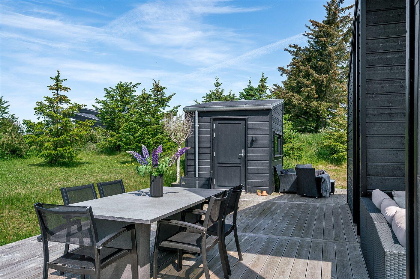 Ferieboligen er beliggende på en 1370 m² stor naturgrund. Der er 900 m til havet. Nærmeste forretning er beliggende i en afstand af 500 m. Til ferieboligen hører 50 m² terrasseareal. Desuden er der 10 m² overdækket terrasse. Parkering ved ferieboligen.
