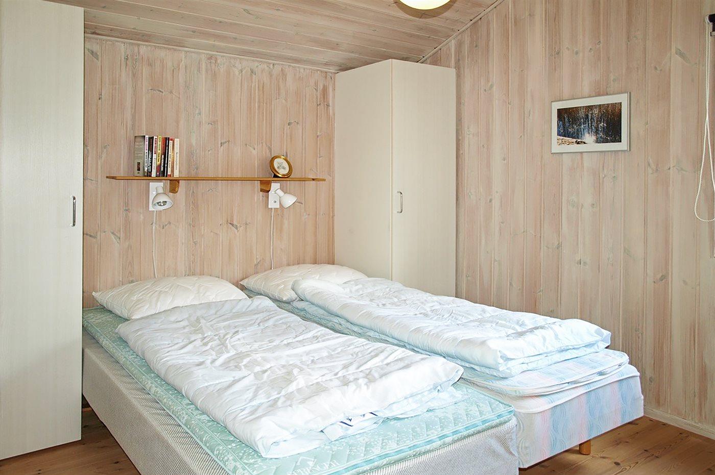 Der er i alt 2 soveværelser. Sovepladserne fordeler sig på: 2 sovepladser i dobbeltseng. 2 sovepladser i enkeltsenge. 2 sovepladser i alkove.- 2 af disse sovepladser befinder sig i stuen.