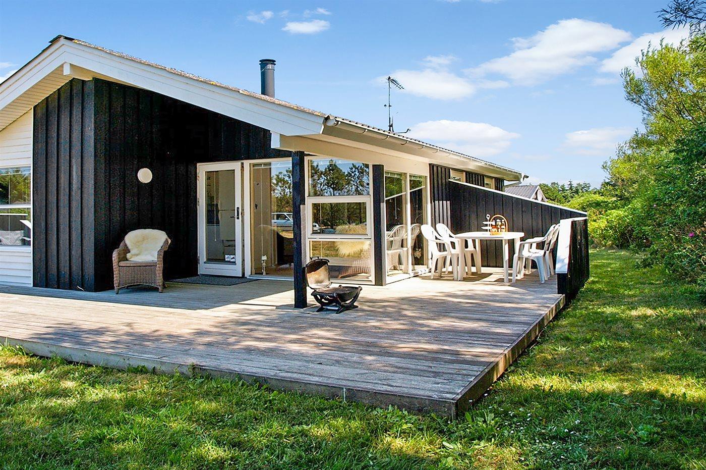 Ferieboligen er beliggende på en 1400 m² stor naturgrund. Der er 900 m til havet. Nærmeste forretning er beliggende i en afstand af 900 m. Til ferieboligen hører 20 m² terrasseareal. Desuden er der 5 m² overdækket terrasse. Der er redskabsrum. Parkering ved ferieboligen.