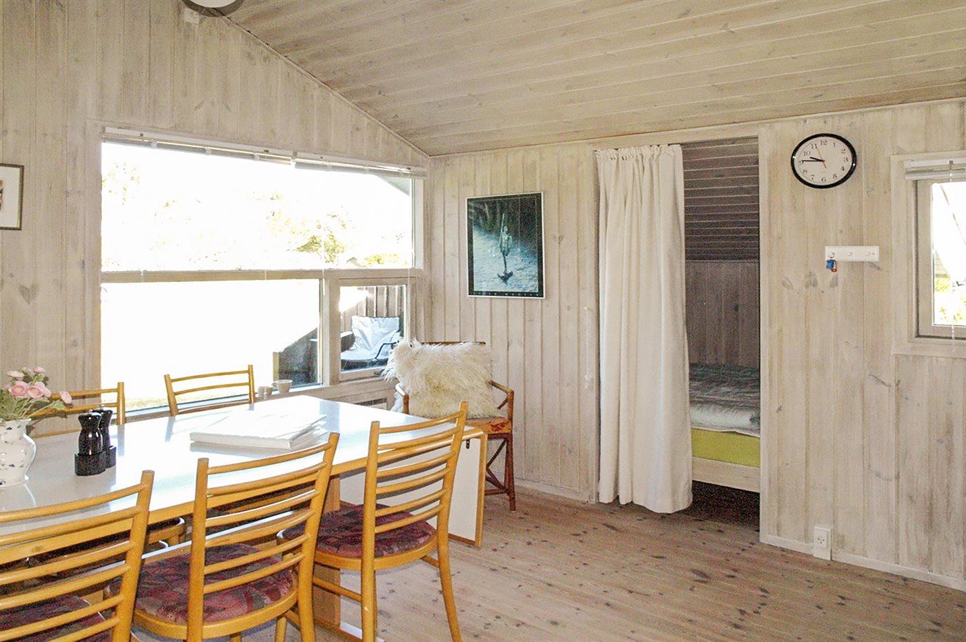 Hyggeligt sommerhus beliggende på en delvis lukket grund med græsplæne og gode muligheder for udendørs aktiviteter. Bemærk at 2 af sovepladserne befinder sig i alkoven i stuen.