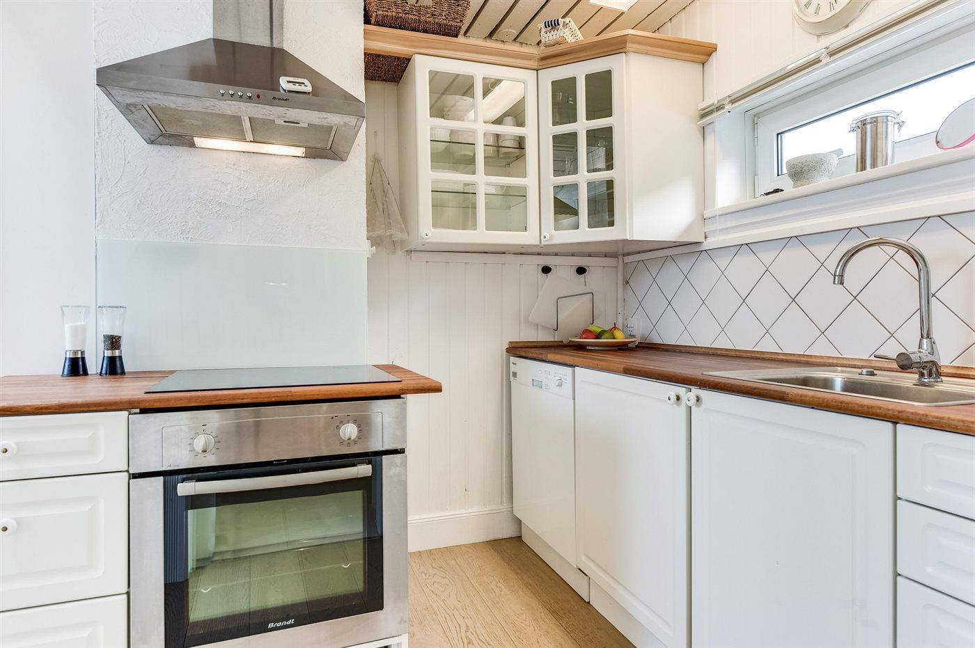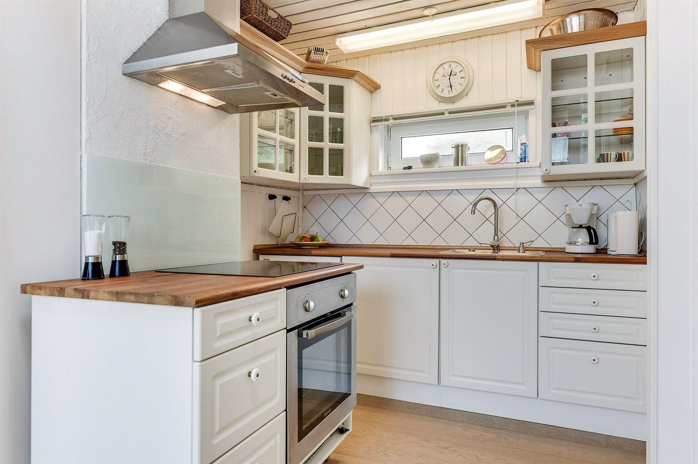 Køkkenet er udstyret med 1 køleskab. Der er 4 induktionskogeplader, varmluftovn, mikrobølgeovn samt opvaskemaskine.