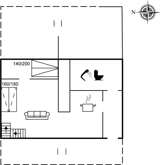Der er i alt 1 soveværelse. Sovepladserne fordeler sig på: 4 sovepladser i dobbeltsenge. 2 sovepladser i sovesofa (dobbelt).- 2 af disse sovepladser befinder sig i opholdsstuen og 2 af dem befinder sig på hemsen.