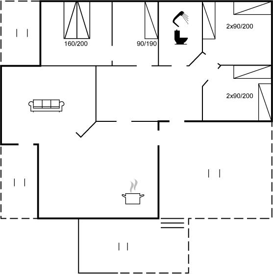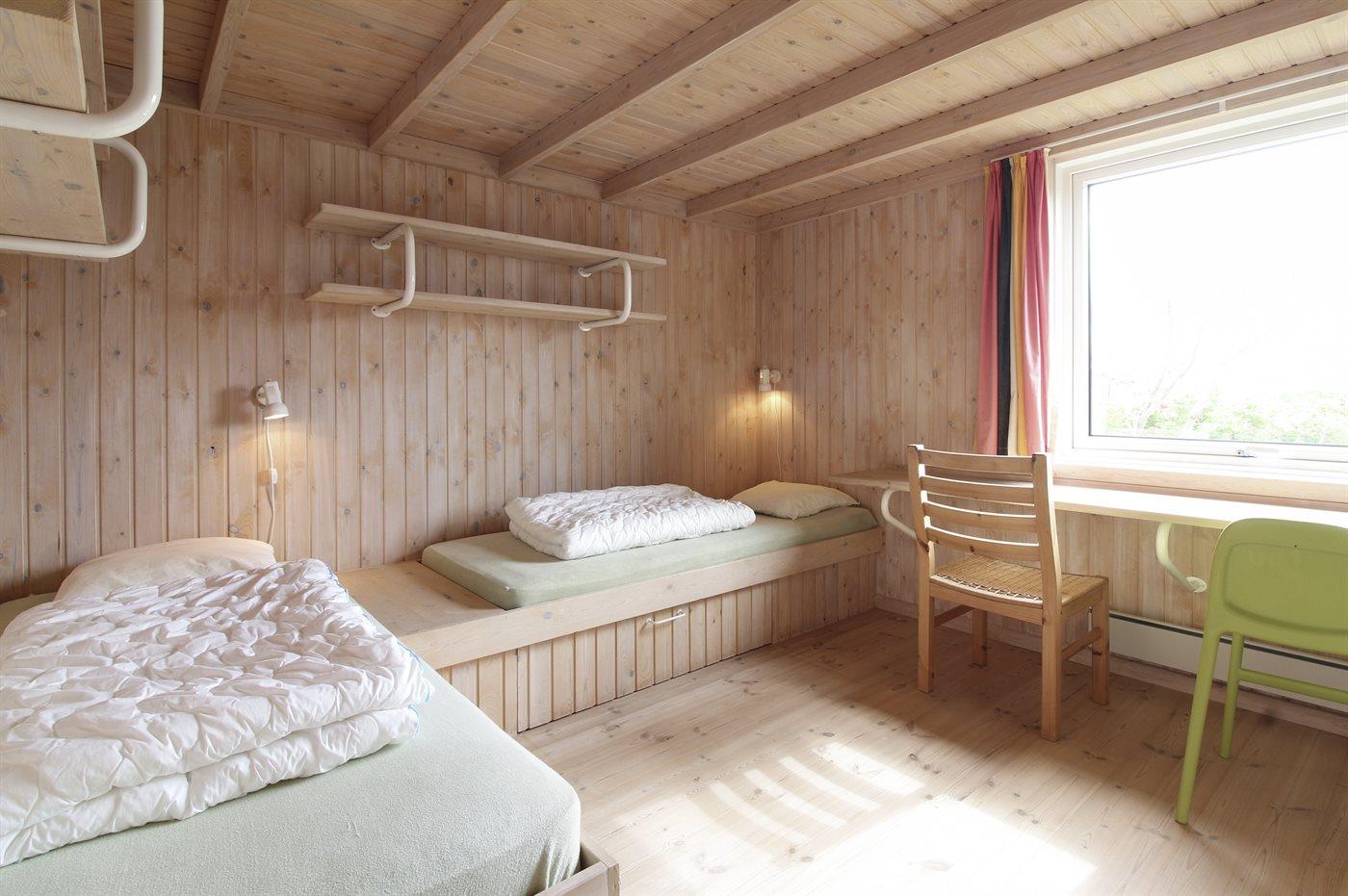 Der er i alt 4 soveværelser. Sovepladserne fordeler sig på: 2 sovepladser i dobbeltseng. 5 sovepladser i enkeltsenge.