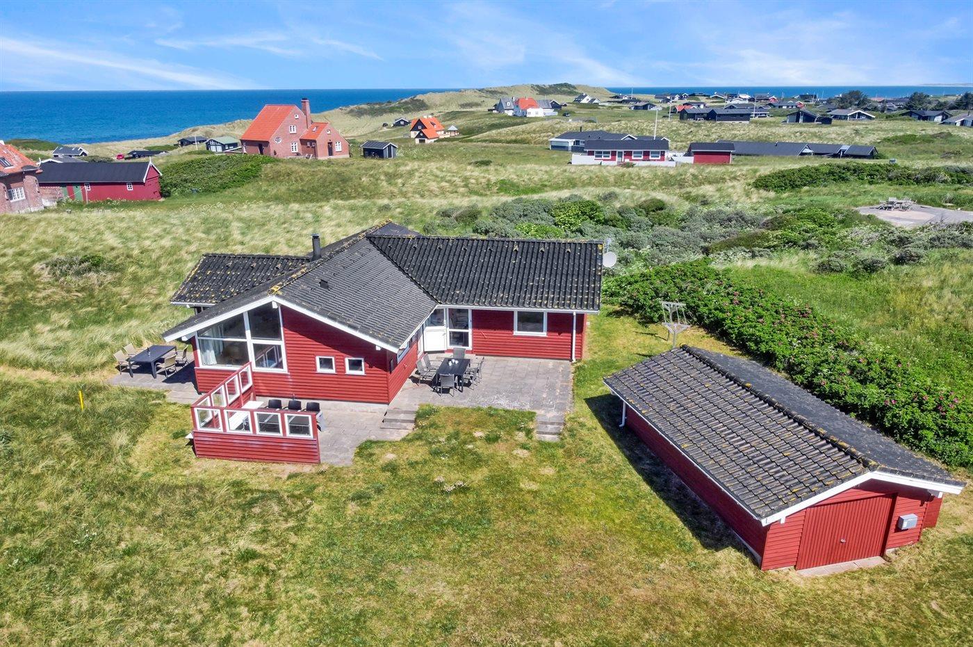 Ferieboligen er beliggende på en 1380 m² stor naturgrund. Der er 300 m til havet. Nærmeste forretning er beliggende i en afstand af 400 m. Til ferieboligen hører 50 m² terrasseareal. Parkering ved ferieboligen.