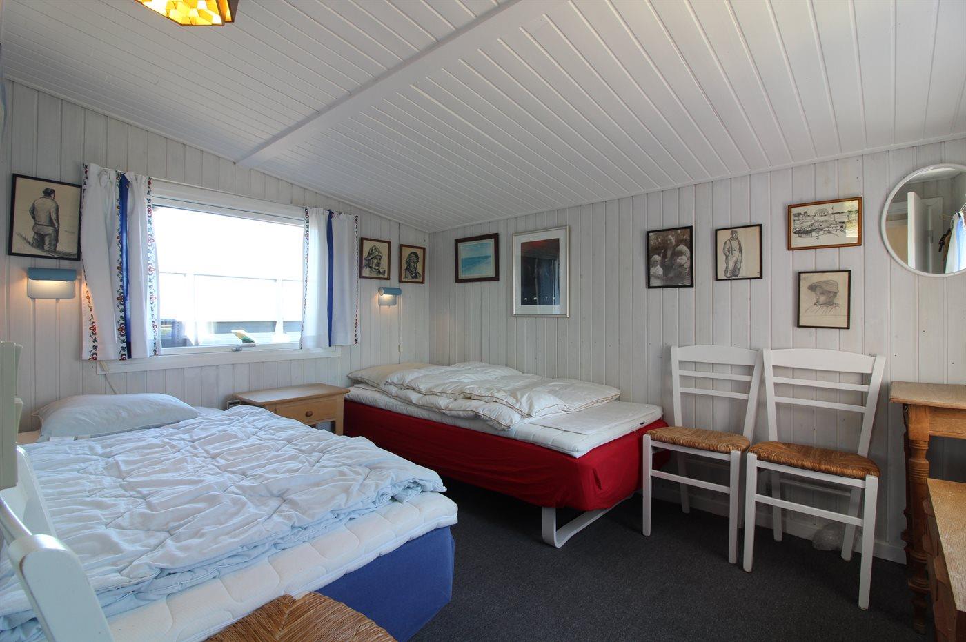 Der er i alt 2 soveværelser. Sovepladserne fordeler sig på: 2 sovepladser i dobbeltseng. 2 sovepladser i enkeltsenge. Derudover er der 1 stk. barneseng.