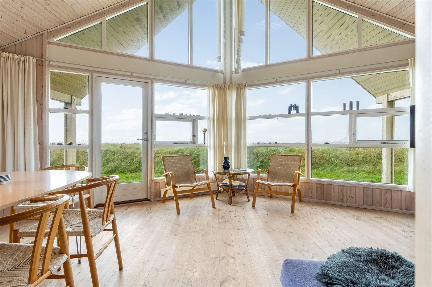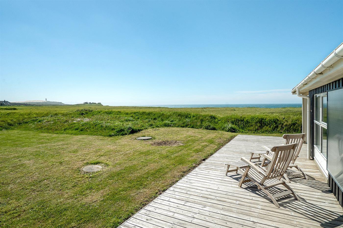 Et virkelig skønt og rummeligt sommerhus med en fantastisk beliggenhed i første række til vandet. Fra såvel huset som den åbne grund er der en pragtfuld udsigt over havet og til Rubjerg Knude, som ligger lige i nærheden.