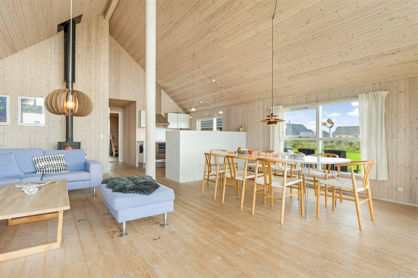 Sommerhuset egner sig til 8 personer. 2 af sovepladserne er kun egnet til større børn (4-11 år). Ferieboligen er på 117 m² og er bygget i 2003. Det er tilladt at medbringe 1 husdyr. Ferieboligen er udstyret med energibesparende varmepumpe. Ferieboligen har vaskemaskine. Tørretumbler. Frysekapacitet på 80 liter. Der er desuden brændeovn. Til de små er der 1 stk. barnestol.