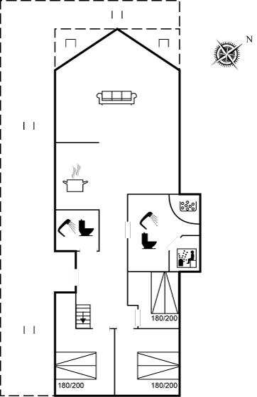 Huset er indrettet lyst og venligt og med adgang til skøn hems med god loftshøjde, og hvor 2 af sovepladserne befinder sig.