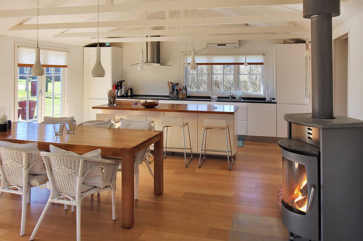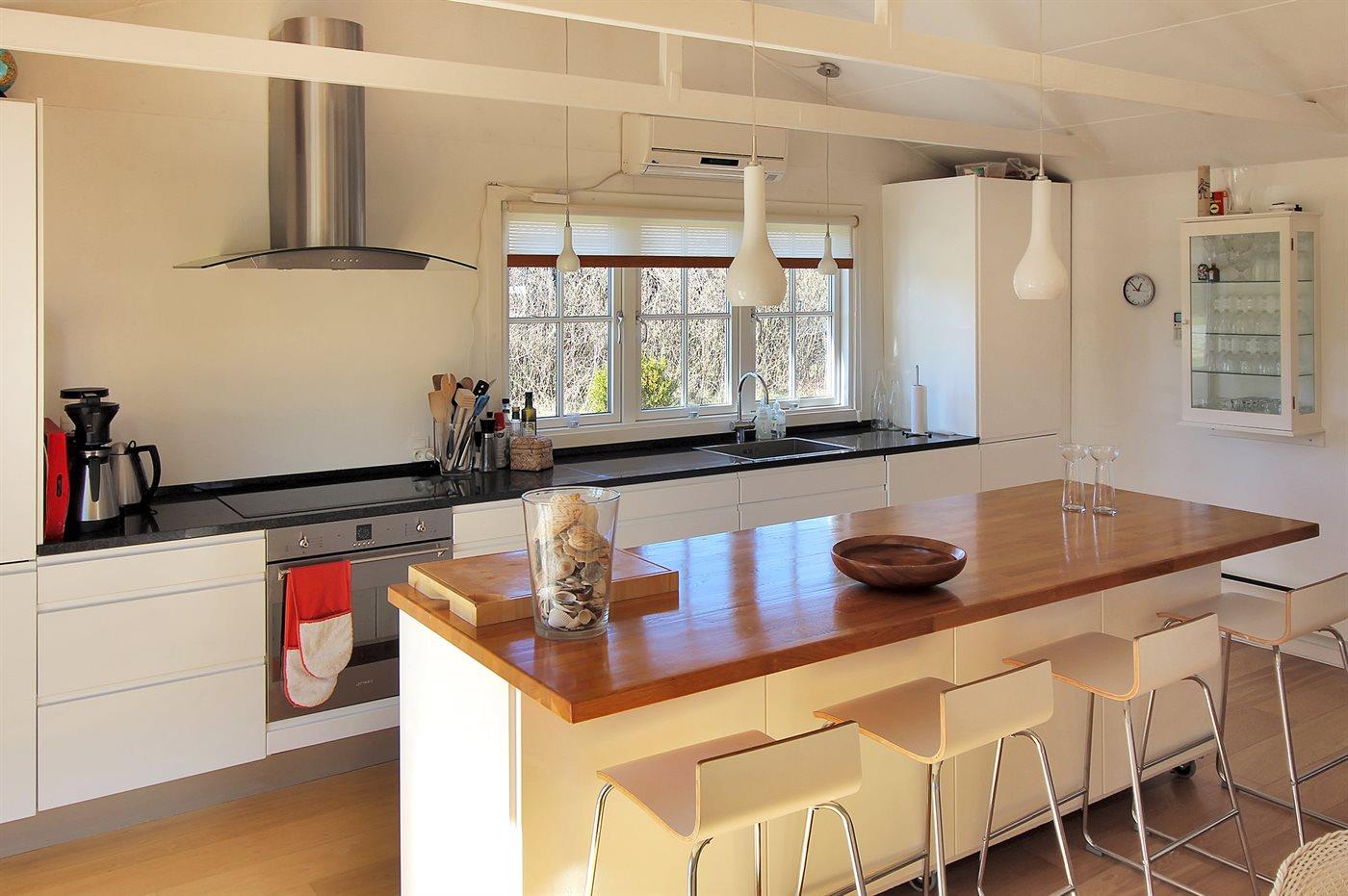 Køkkenet er udstyret med 1 køleskab. Der er 4 keramiske kogeplader, varmluftovn, mikrobølgeovn samt opvaskemaskine.