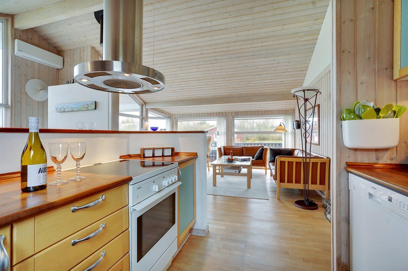Køkkenet er udstyret med 2 køleskabe. Der er 4 keramiske kogeplader, bageovn, mikrobølgeovn samt opvaskemaskine.
