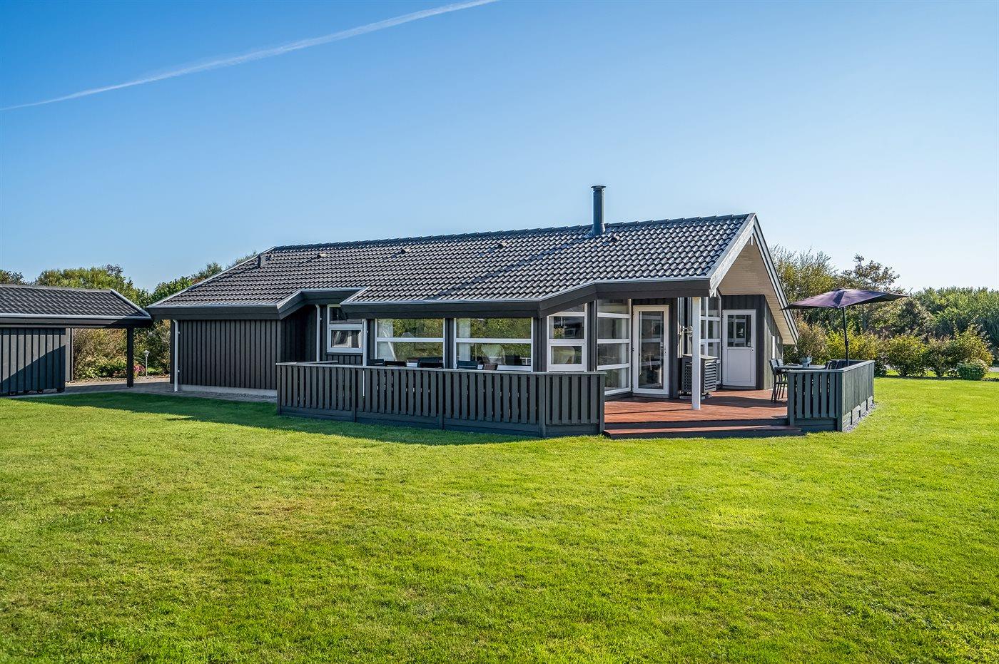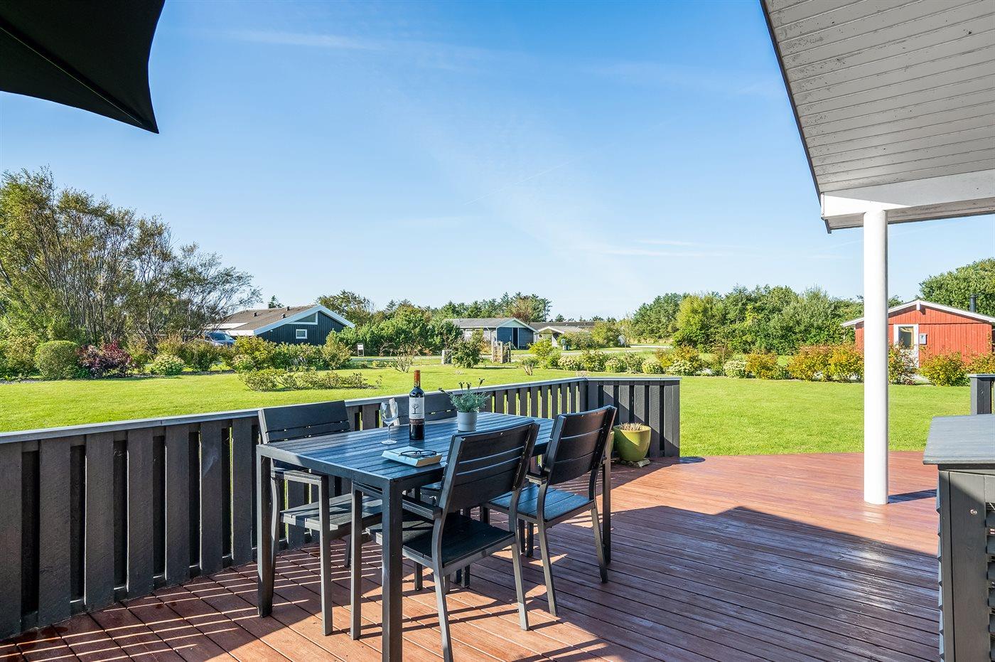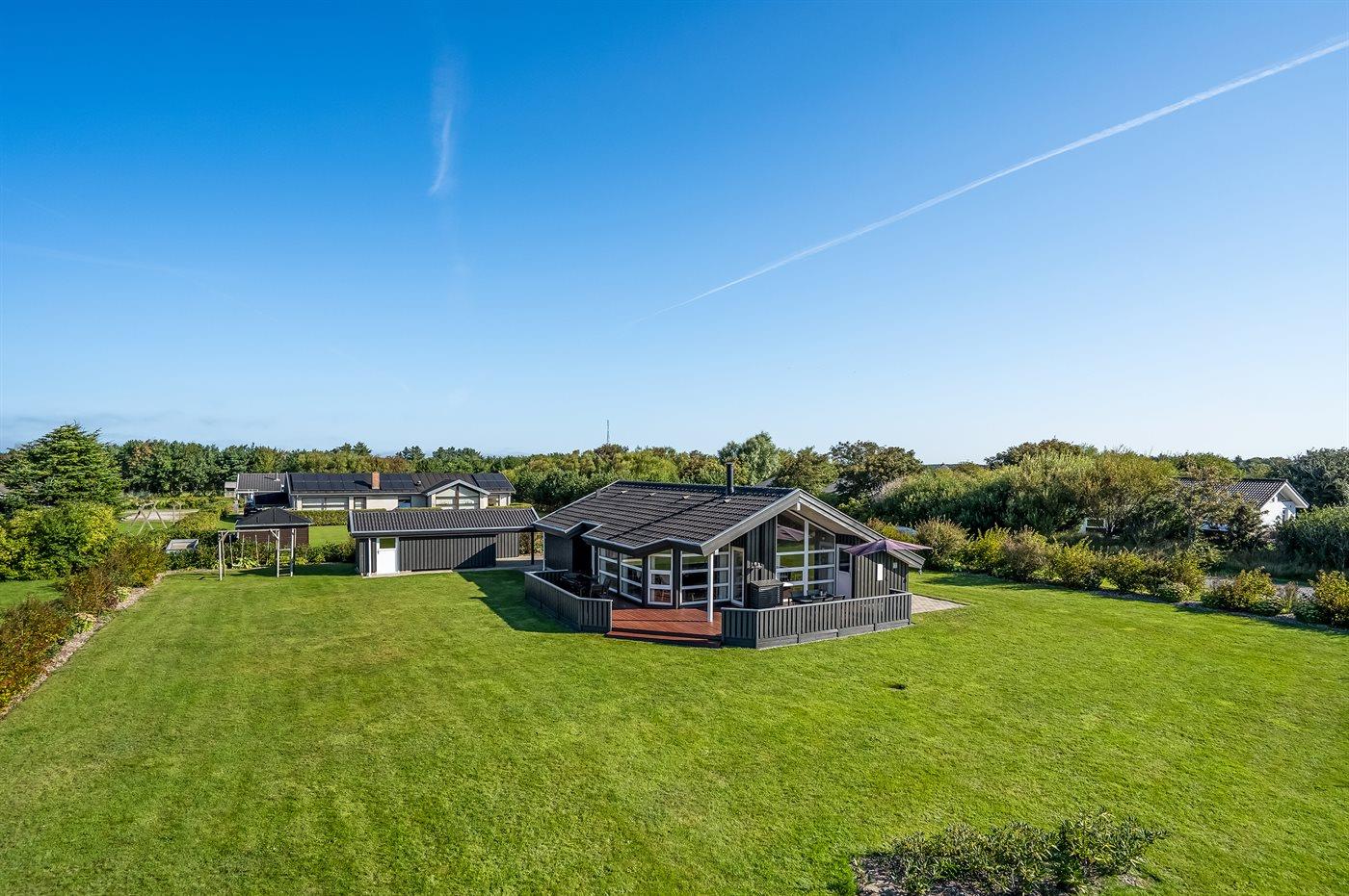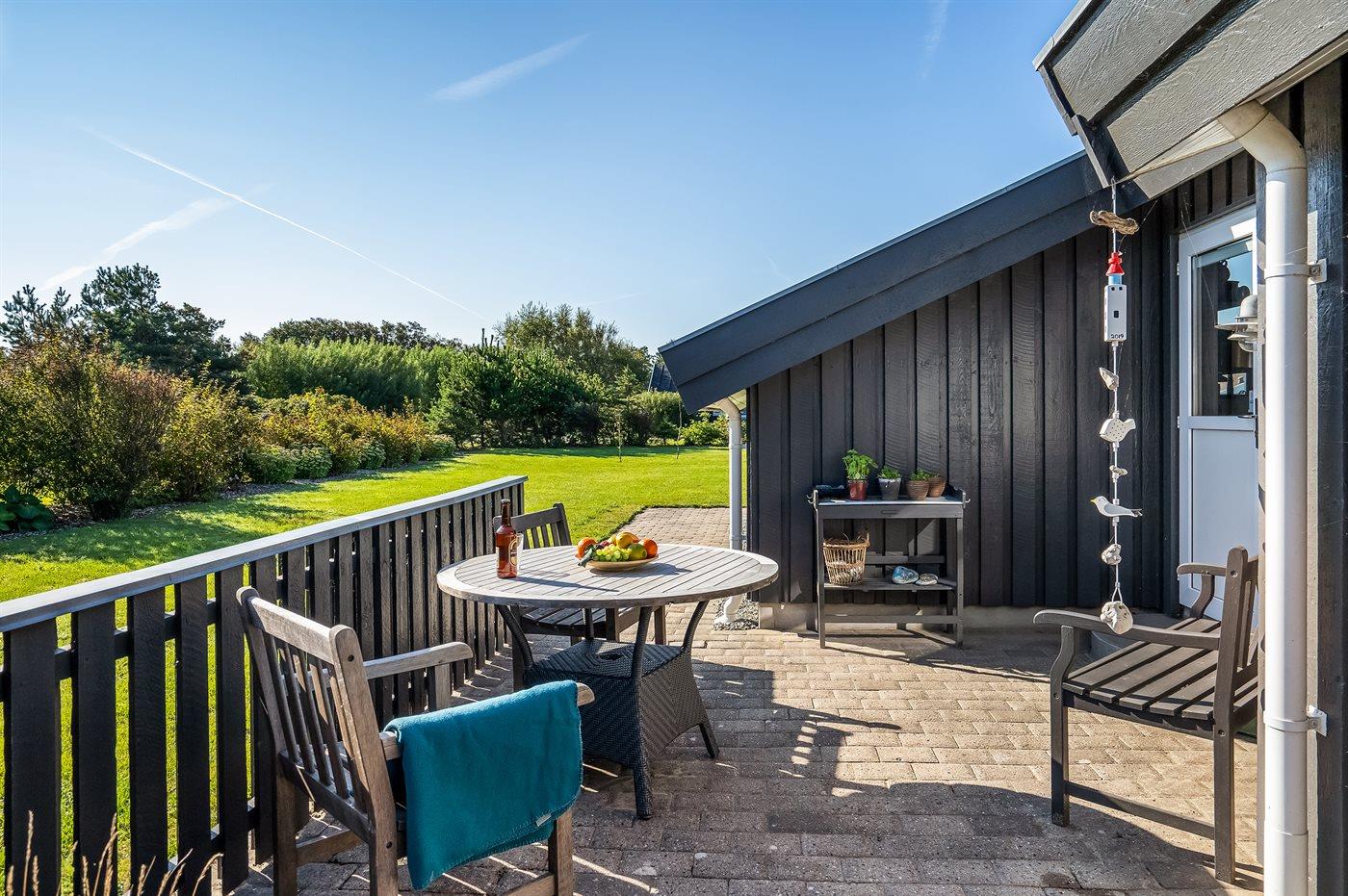 Ferieboligen er beliggende på en 1500 m² stor naturgrund. Der er 1200 m til havet. Nærmeste forretning er beliggende i en afstand af 900 m. Til ferieboligen hører 40 m² terrasseareal. Desuden er der 5 m² overdækket terrasse. Gynge. Grill til rådighed. Der er carport til rådighed. Parkering ved ferieboligen.