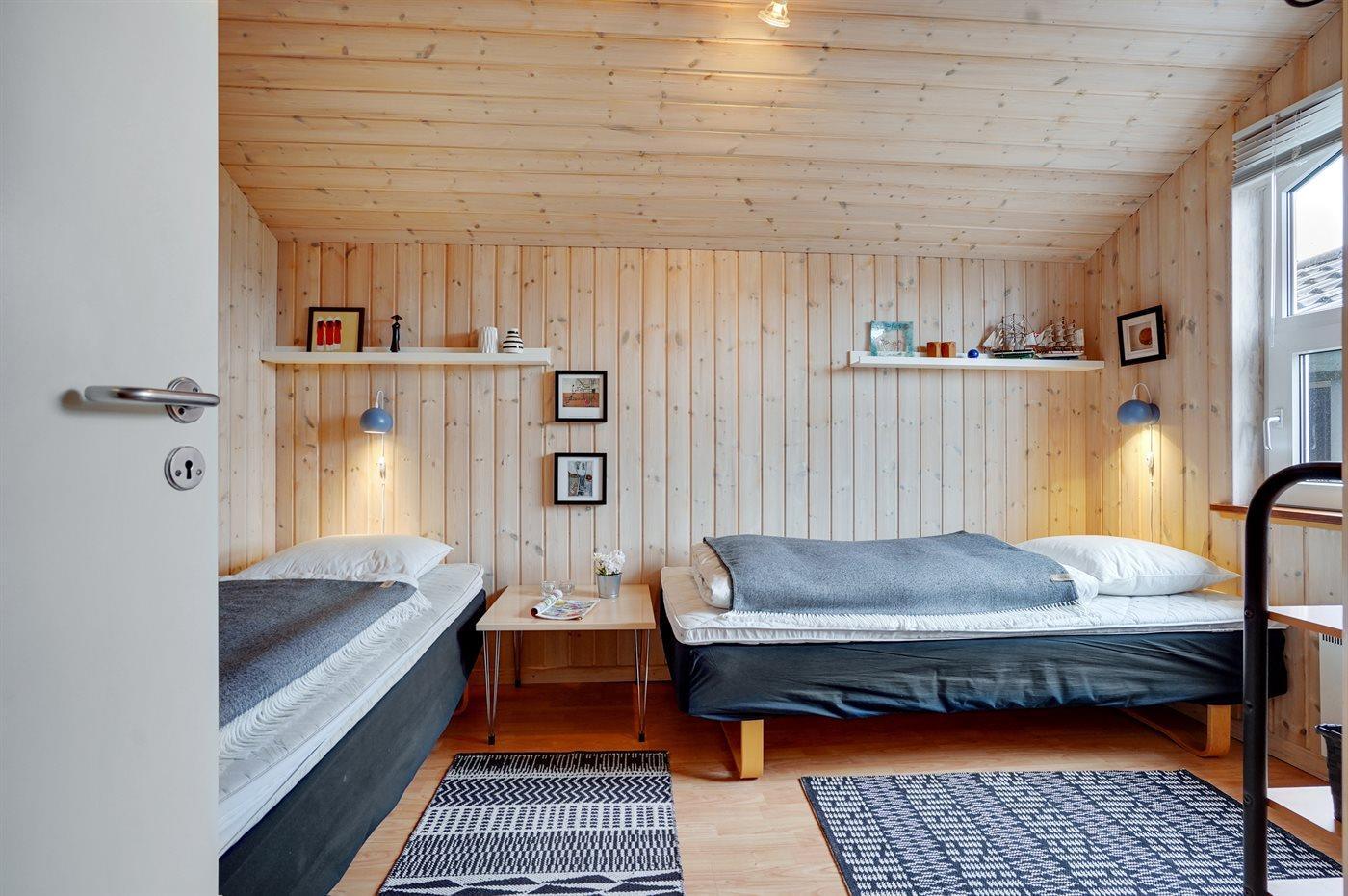 Der er i alt 4 soveværelser. Sovepladserne fordeler sig på: 4 sovepladser i dobbeltsenge. 4 sovepladser i enkeltsenge. Derudover er der 1 stk. barneseng.