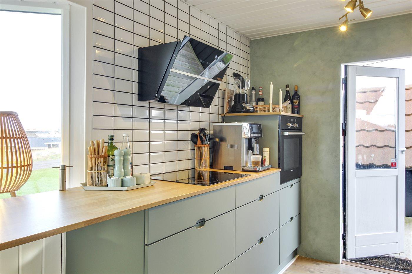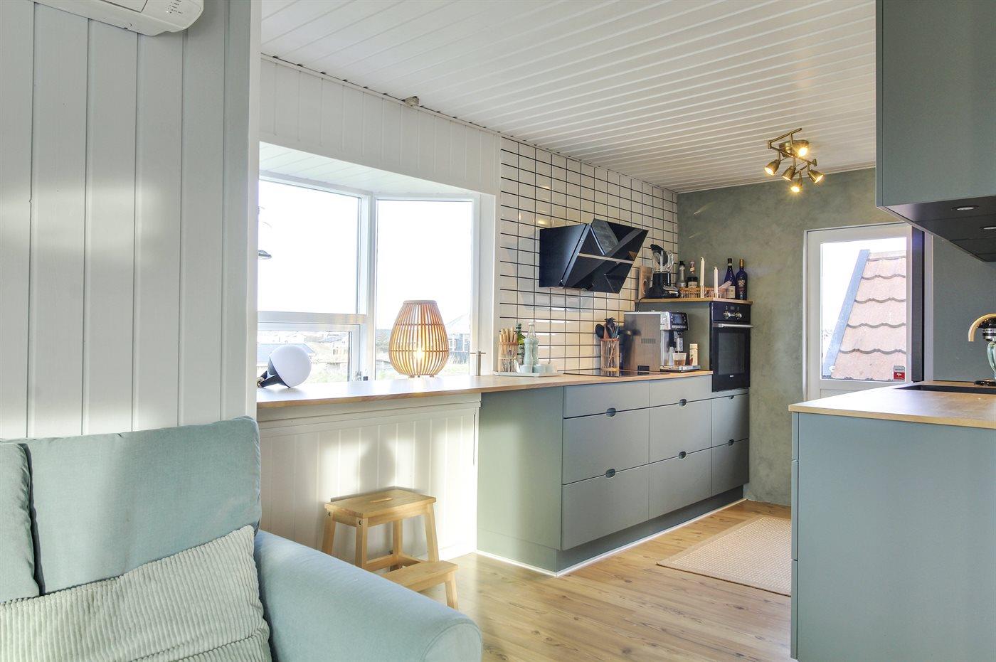 Køkkenet er udstyret med 1 køleskab. Der er 4 induktionskogeplader, varmluftovn, mikrobølgeovn samt opvaskemaskine.