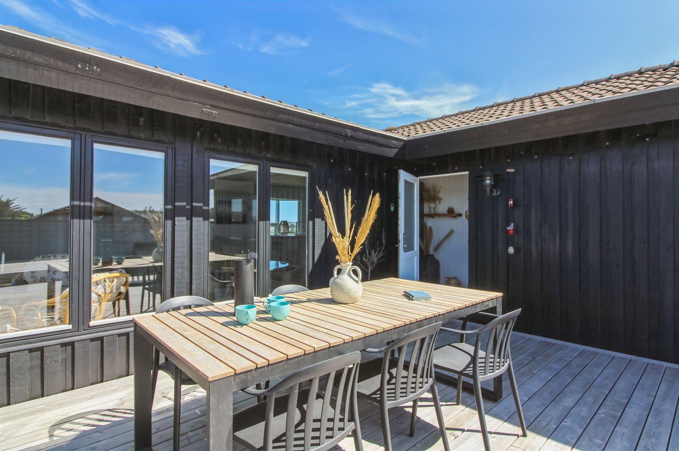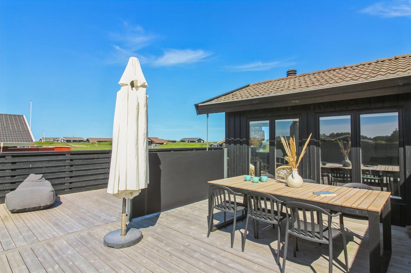 Hyggeligt sommerhus i Lønstrup med udsigt til Rubjerg Knude og lukket terrasse, perfekt til familier og hunde.