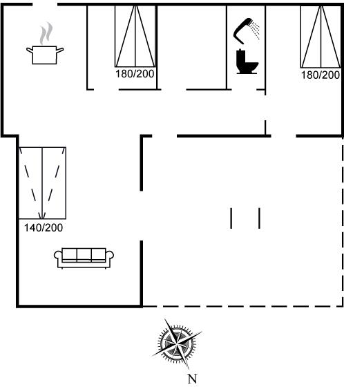 Der er i alt 2 soveværelser. Sovepladserne fordeler sig på: 4 sovepladser i dobbeltsenge. 2 sovepladser i sovesofa (dobbelt). 2 af disse sovepladser befinder sig i stuen.