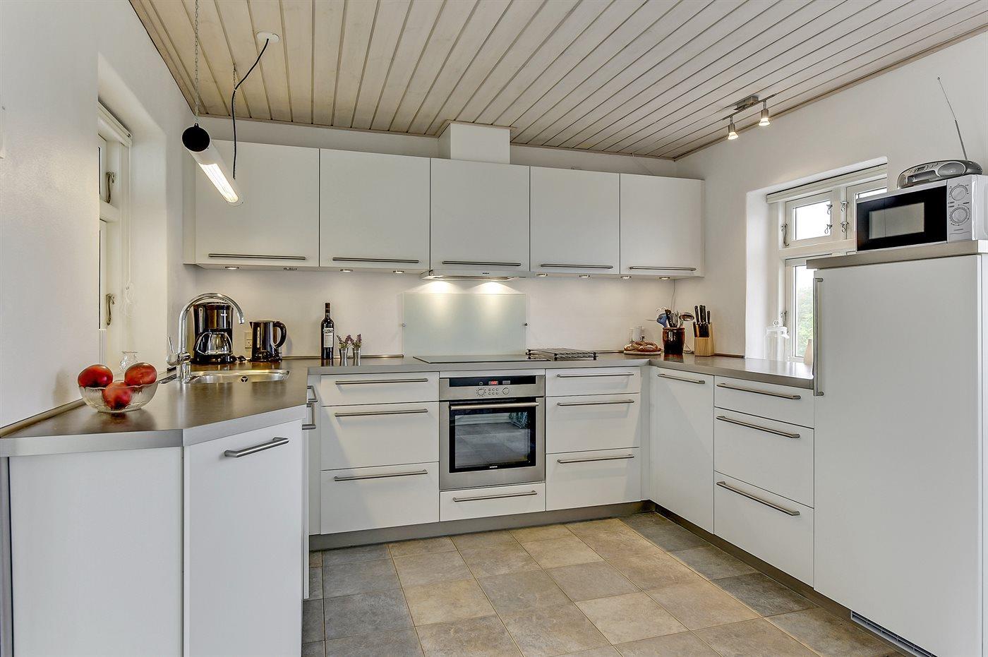 Køkkenet er udstyret med 1 køleskab. Der er 4 keramiske kogeplader, varmluftovn, mikrobølgeovn samt opvaskemaskine.