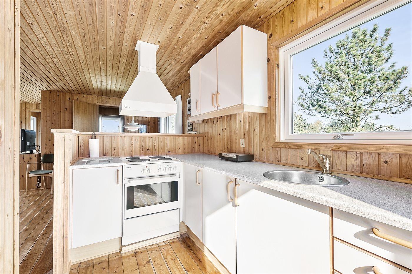 Køkkenet er udstyret med 1 køleskab. Der er 4 elkogeplader, bageovn.