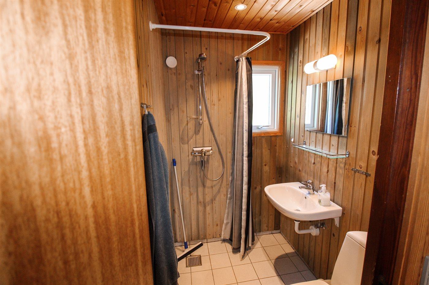 Der er 1 badeværelse med bruser og 1 toilet.. Der er gulvvarme på 1 badeværelse.