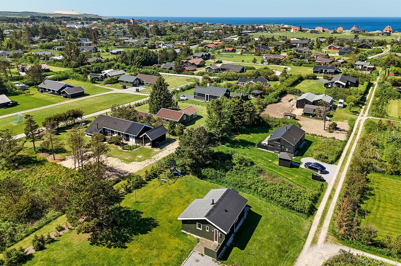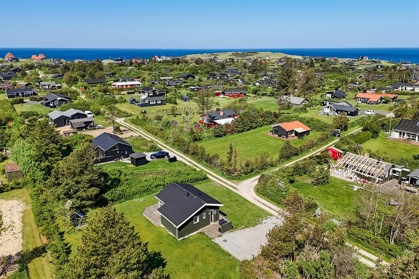 Ferieboligen er beliggende på en 1203 m² stor naturgrund. Der er 719 m til havet. Nærmeste forretning er beliggende i en afstand af 750 m. Til ferieboligen hører 40 m² terrasseareal. Parkering ved ferieboligen.