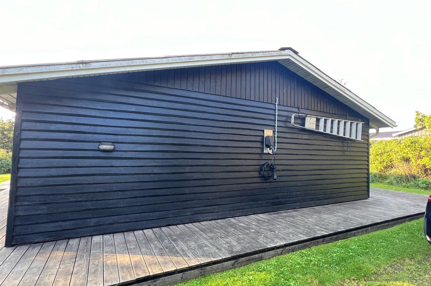 Sommerhuset er beliggende på en 1590 m² stor naturgrund. Der er 400 m til havet, samt 800 m til nærmeste trappenedgang til vandet. Nærmeste forretning er beliggende i en afstand af 500 m. Til ferieboligen hører 60 m² åbent terrasseareal. Desuden er der 5 m² overdækket terrasse. Der er redskabsrum. Parkering ved ferieboligen. Der er installeret stik til opladning af elbil med 11 kW ladeeffekt.