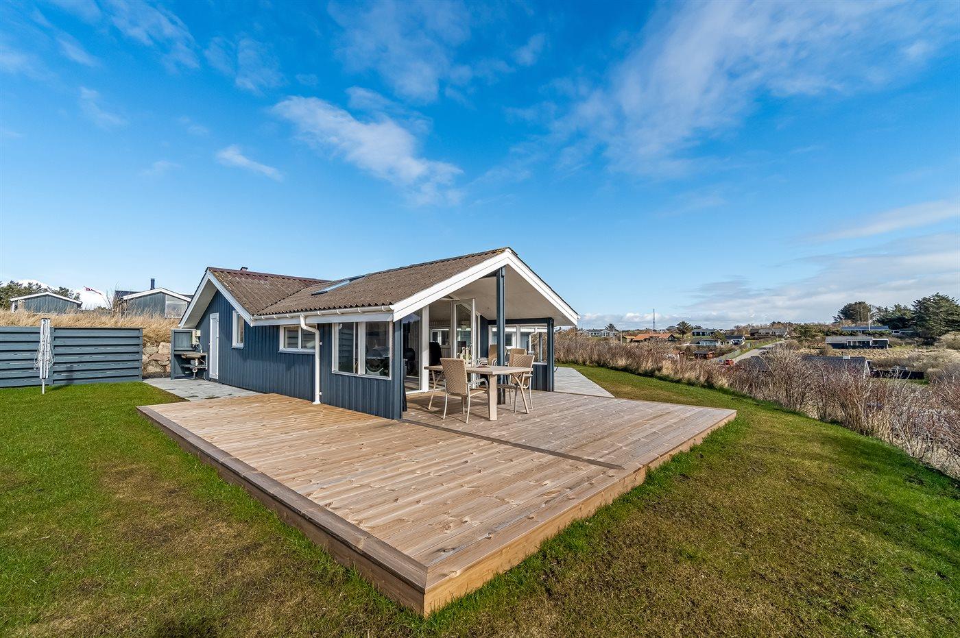 Ferieboligen er beliggende på en 1300 m² stor naturgrund. Der er 500 m til havet. Nærmeste forretning er beliggende i en afstand af 150 m. Til ferieboligen hører 45 m² terrasseareal. Desuden er der 11 m² overdækket terrasse. Der er redskabsrum. Grill til rådighed. Parkering ved ferieboligen.