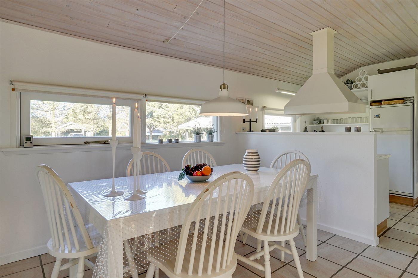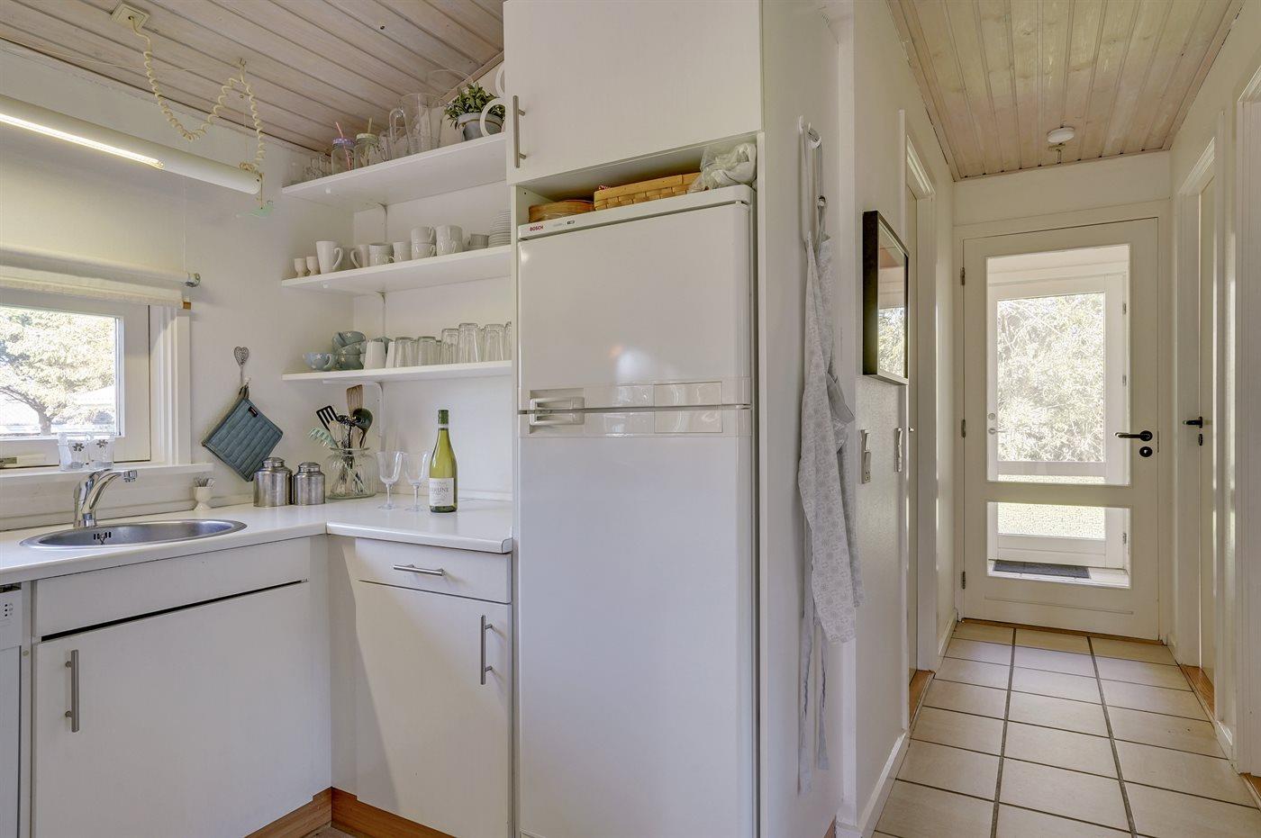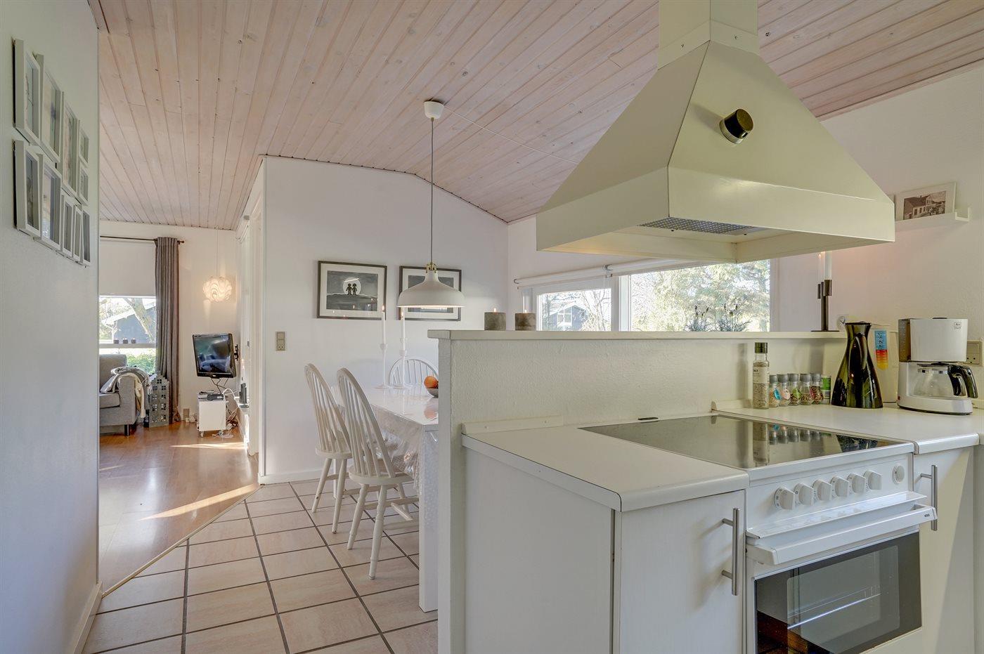 Køkkenet er udstyret med 1 køleskab. Der er 4 keramiske kogeplader, varmluftovn, mikrobølgeovn samt opvaskemaskine.