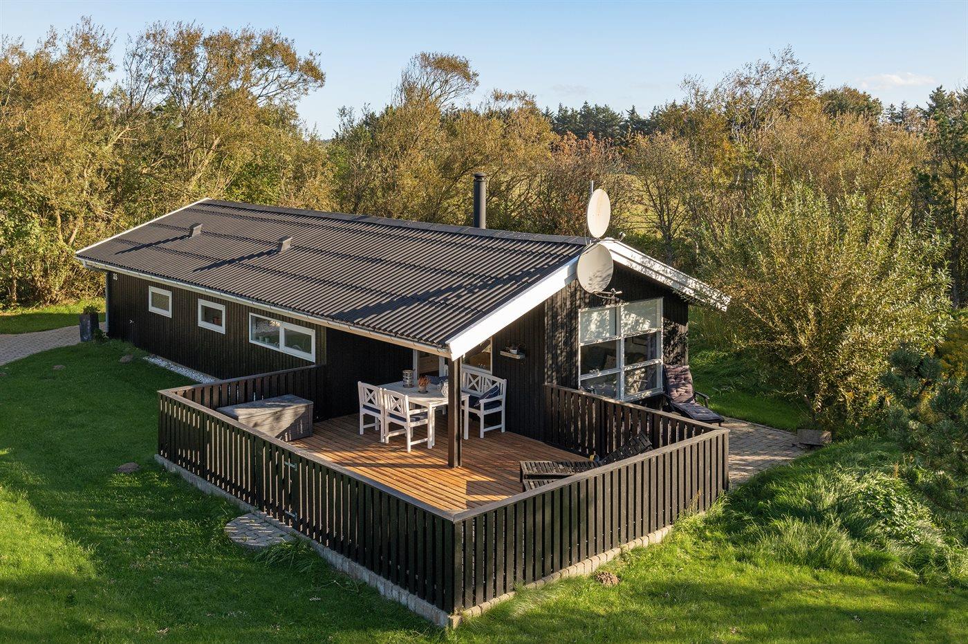Hyggeligt sommerhus nær Lønstrup med store terrasser og plads til udendørs aktiviteter.