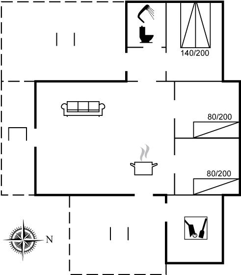 Der er i alt 3 soveværelser. Sovepladserne fordeler sig på: 2 sovepladser i dobbeltseng. 2 sovepladser i enkeltsenge.