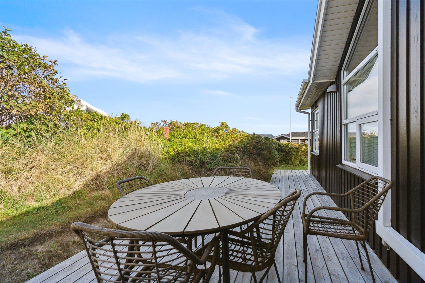 Ferieboligen er beliggende på en 704 m² stor naturgrund. Der er 350 m til havet. Nærmeste forretning er beliggende i en afstand af 750 m. Til ferieboligen hører 95 m² terrasseareal. Udendørs bruser. Parkering ved ferieboligen.