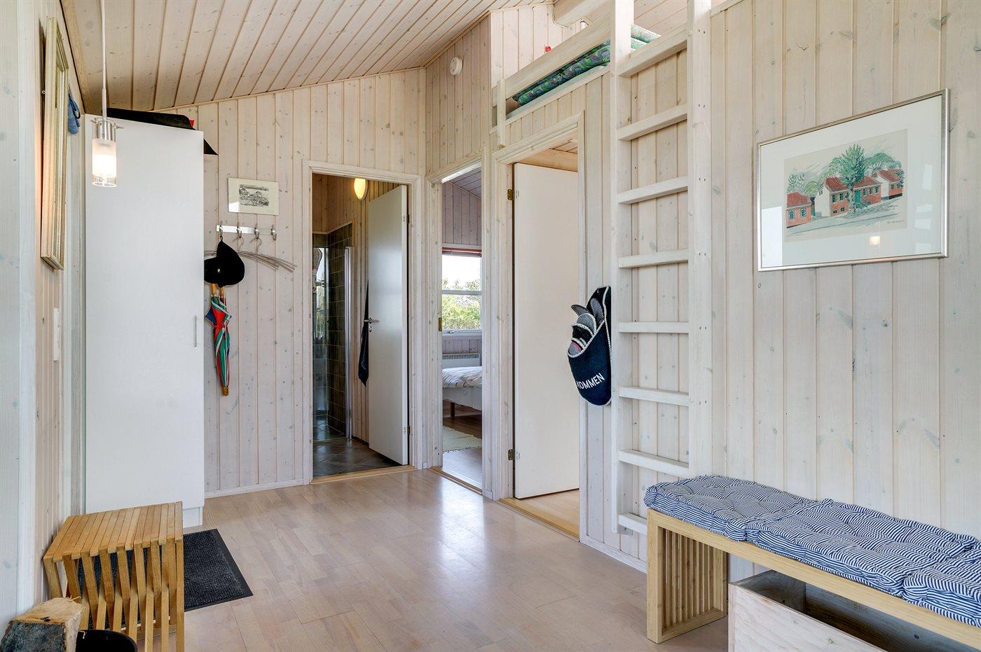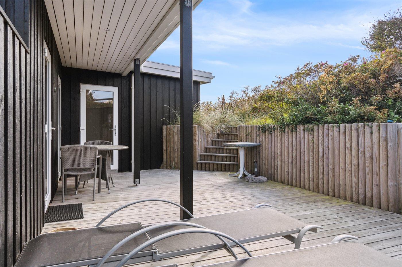 Et velbeliggende sommerhus i gåafstand til Lønstrup by og med dejlig udsigt til vandet. Sauna med adgang fra terrasse og med udsigt til Hirtshals Fyr Der er skøn terrasse rundt om huset med mulighed for både sol og læ. Bemærk: Huset er indrettet med hems, hvor 2 af de i alt 6 sovepladser befinder sig.