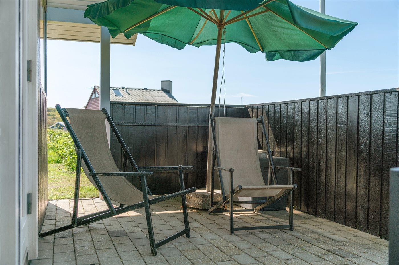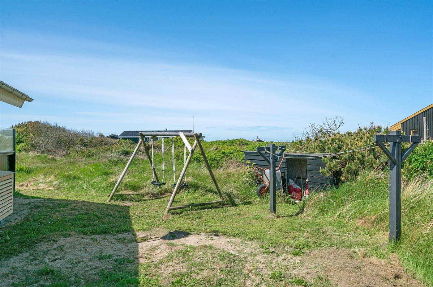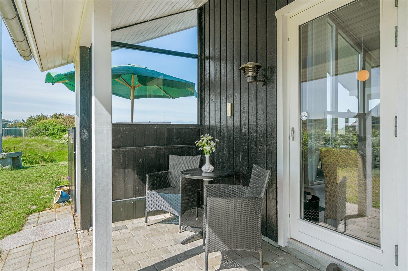 Ferieboligen er beliggende på en 1000 m² stor naturgrund. Der er 150 m til havet. Nærmeste forretning er beliggende i en afstand af 1200 m. Til ferieboligen hører 15 m² terrasseareal. Desuden er der 20 m² overdækket terrasse. Gynge. Grill til rådighed. Parkering ved ferieboligen.