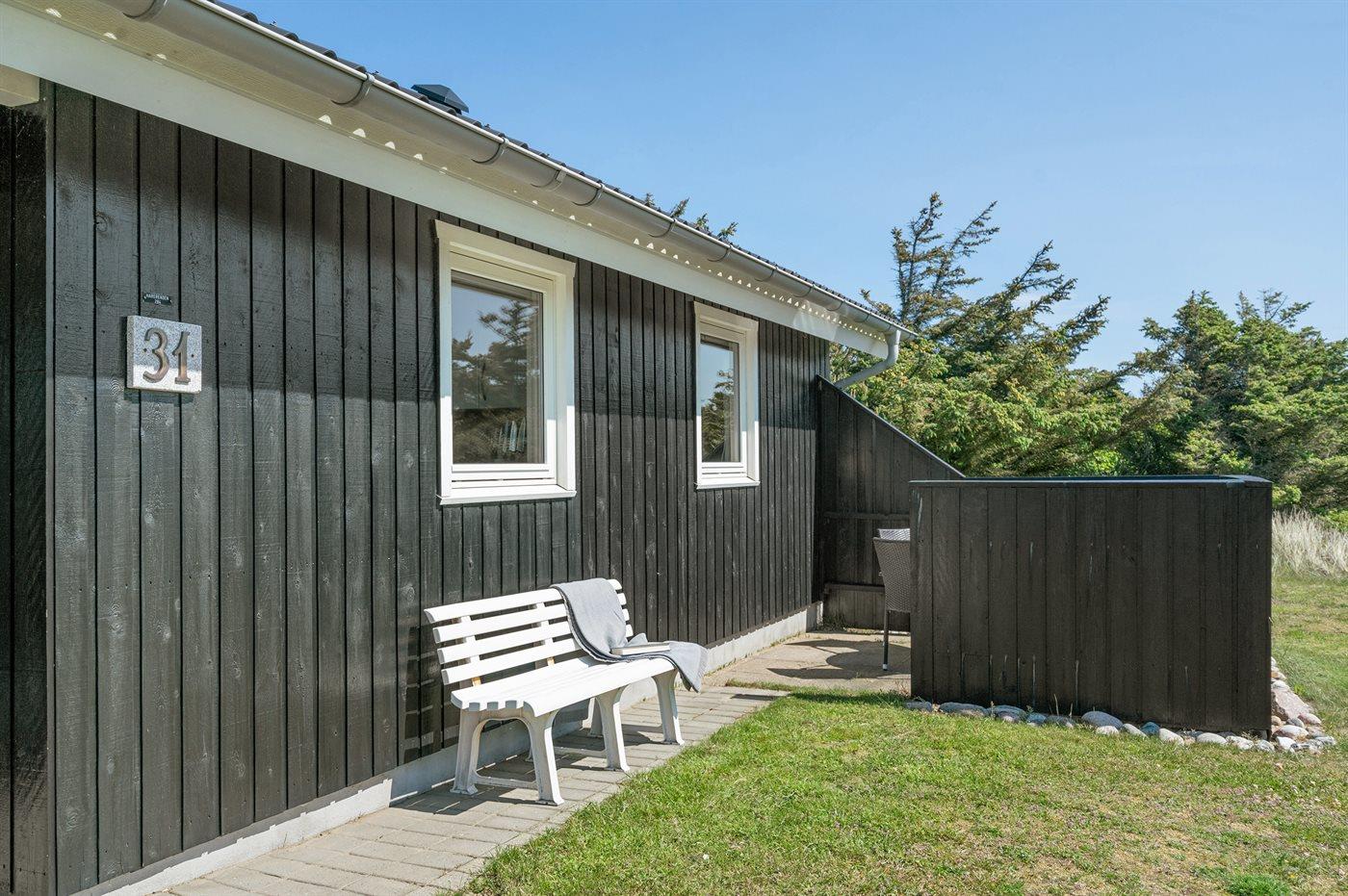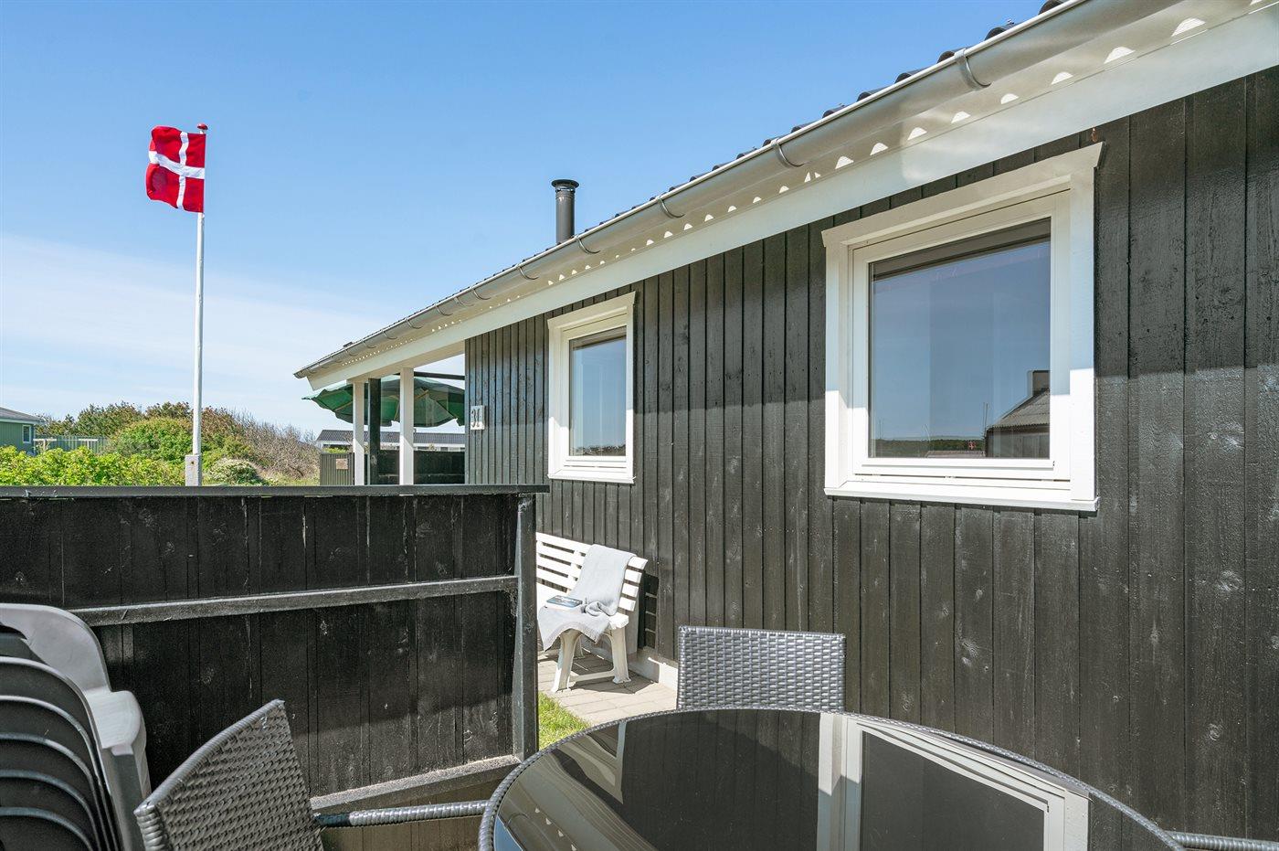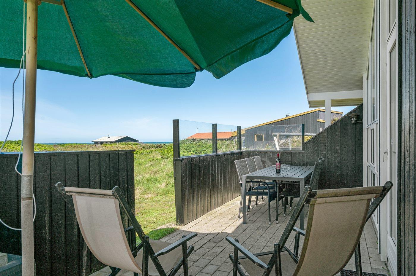 Ferieboligen er beliggende på en 1000 m² stor naturgrund. Der er 150 m til havet. Nærmeste forretning er beliggende i en afstand af 1200 m. Til ferieboligen hører 15 m² terrasseareal. Desuden er der 20 m² overdækket terrasse. Gynge. Grill til rådighed. Parkering ved ferieboligen.