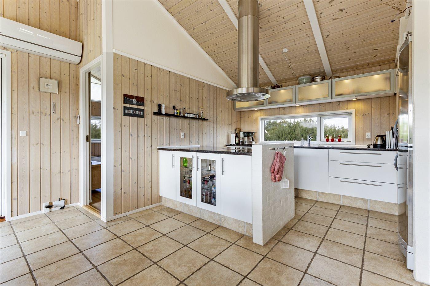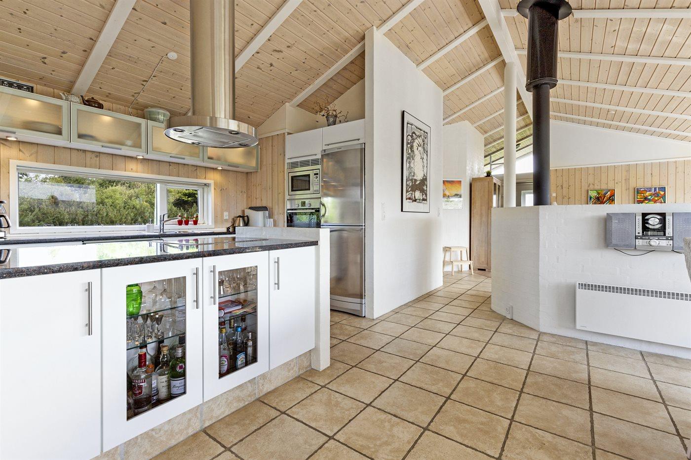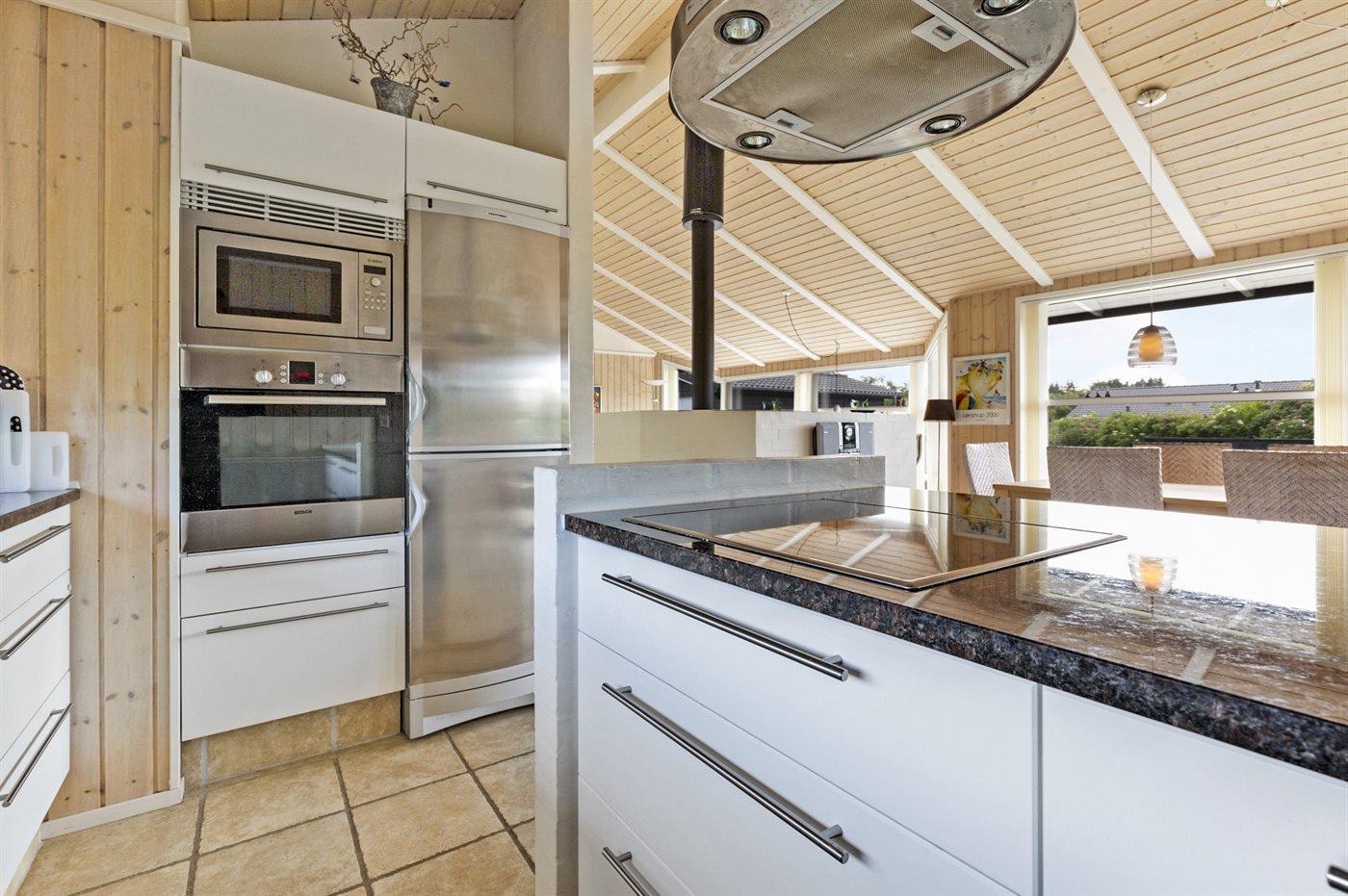 Køkkenet er udstyret med 1 køleskab. Der er 4 induktionskogeplader, varmluftovn, mikrobølgeovn samt opvaskemaskine.