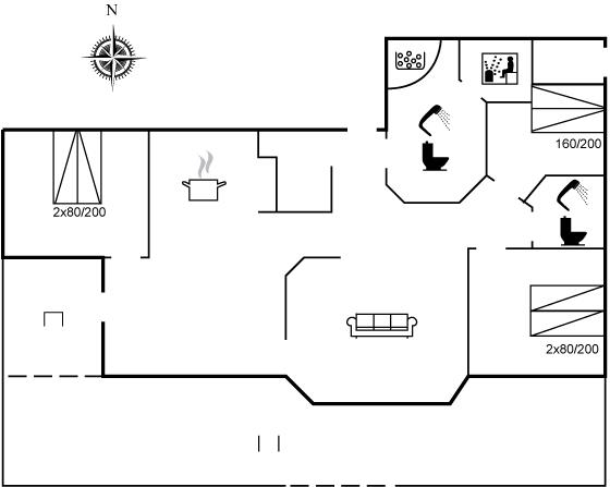 Der er i alt 3 soveværelser. Sovepladserne fordeler sig på: 4 sovepladser i dobbeltsenge. 2 sovepladser i enkeltsenge.