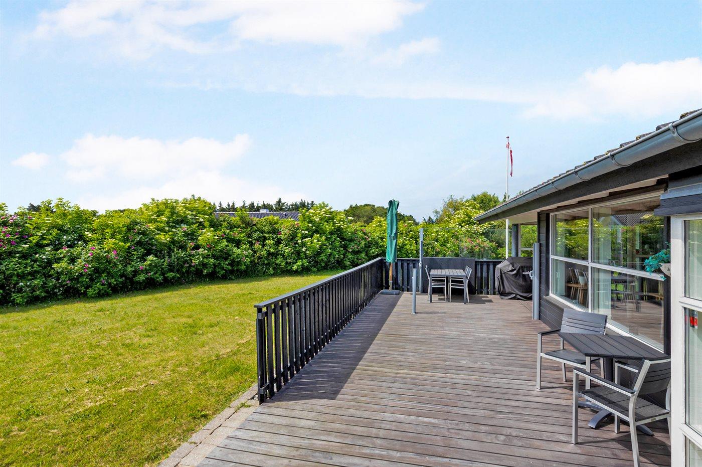 Ferieboligen er beliggende på en 1594 m² stor naturgrund. Der er 1040 m til havet. Nærmeste forretning er beliggende i en afstand af 1000 m. Til ferieboligen hører 60 m² terrasseareal. Desuden er der 20 m² overdækket terrasse. Parkering ved ferieboligen.