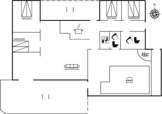 Der er i alt 4 soveværelser. Sovepladserne fordeler sig på: 4 sovepladser i dobbeltsenge. 4 sovepladser i enkeltsenge. Derudover er der 1 stk. barneseng.