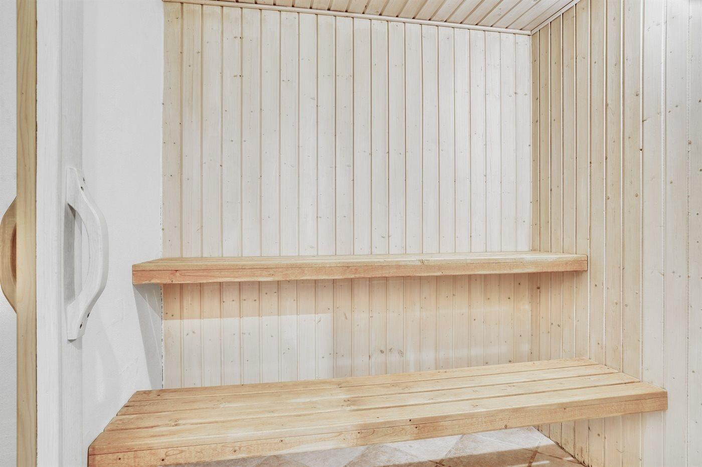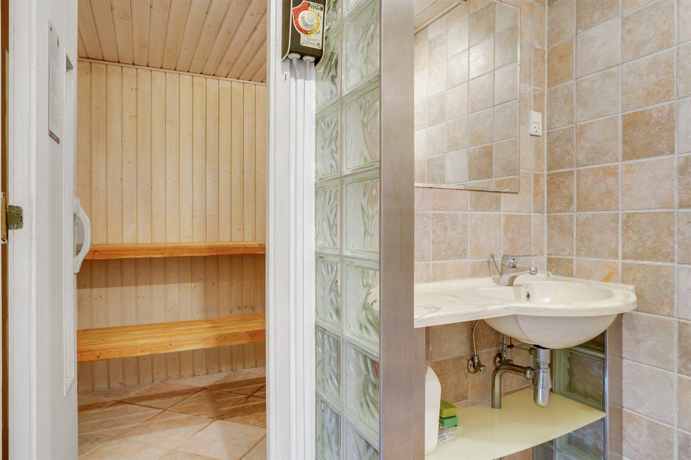 Der er 2 badeværelser med bruseniche og 2 toiletter. Der er gulvvarme på 2 badeværelser. I saunaen er der mulighed for afslapning.