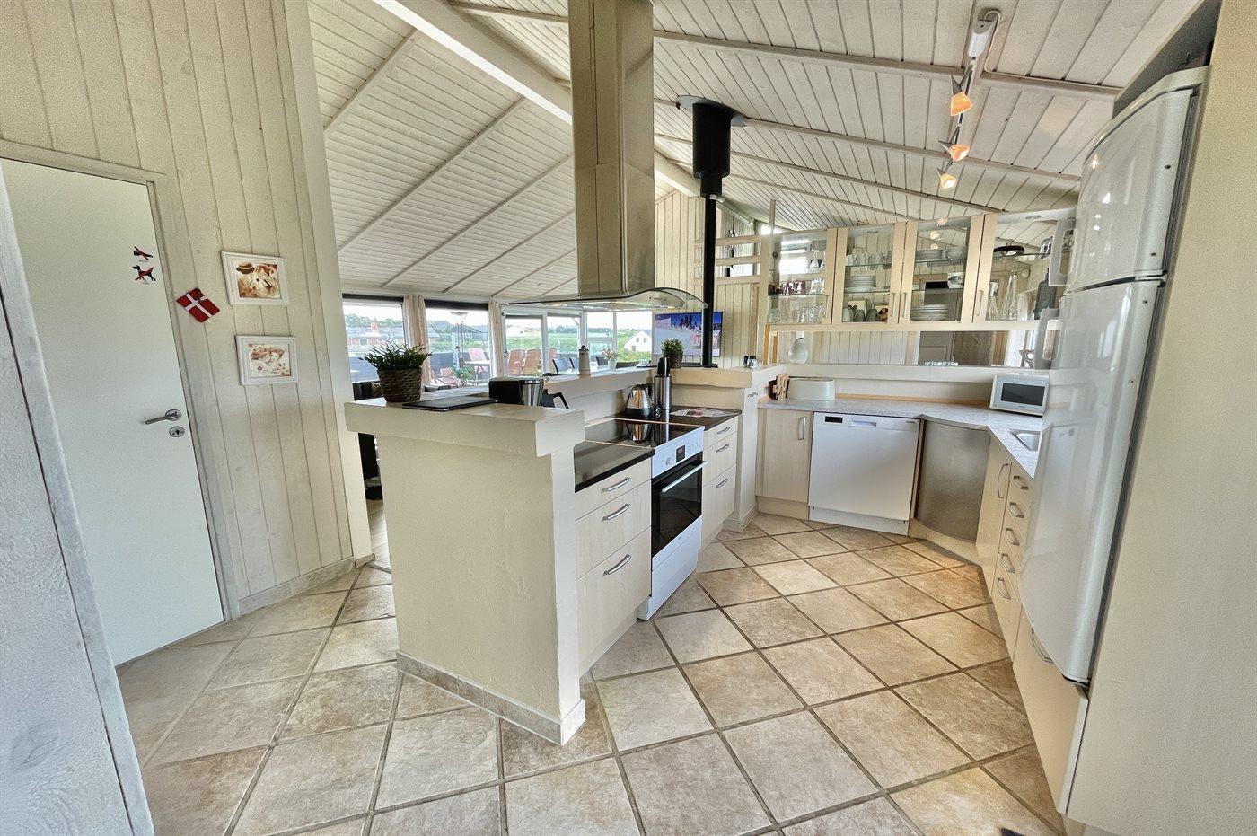 Køkkenet er udstyret med 1 køleskab. Der er 4 keramiske kogeplader, varmluftovn, mikrobølgeovn samt opvaskemaskine.