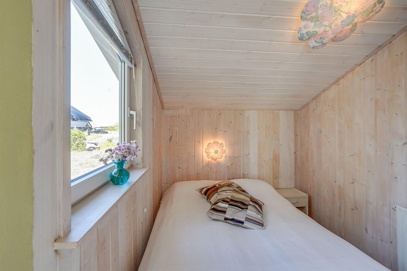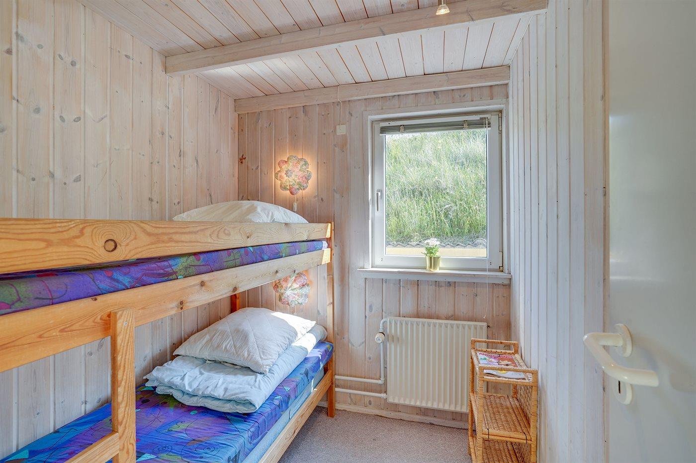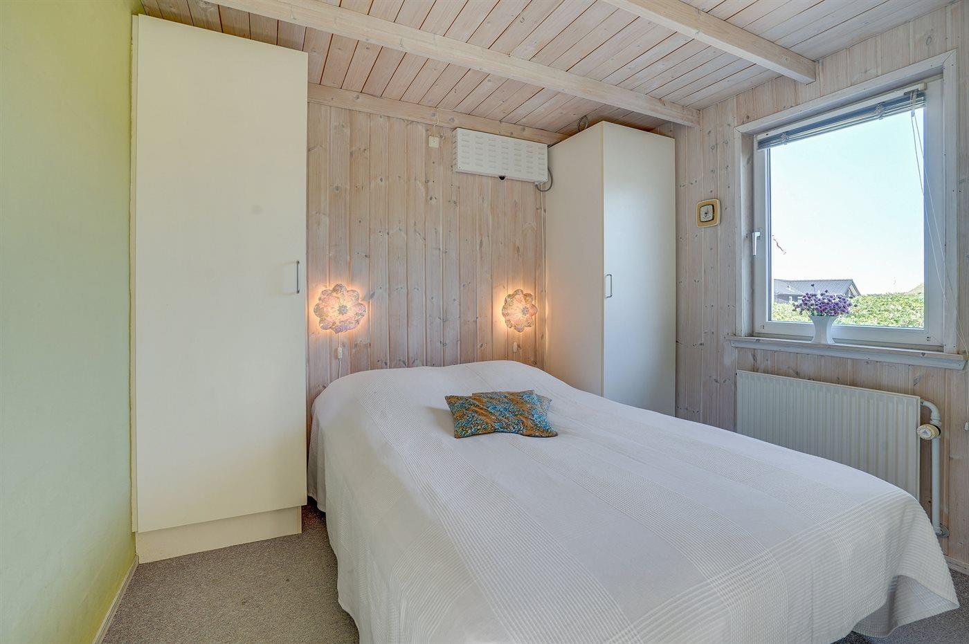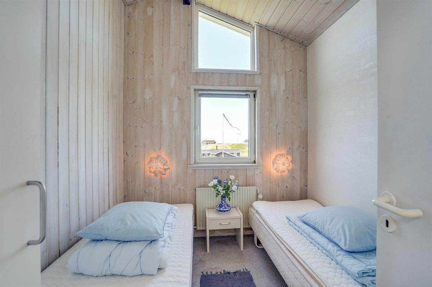 Der er i alt 4 soveværelser. Sovepladserne fordeler sig på: 4 sovepladser i dobbeltsenge. 2 sovepladser i enkeltsenge. 2 sovepladser i køjeseng. 2 sovepladser på madrasser. 2 af disse sovepladser befinder sig på husets hems. Derudover er der 1 stk. barneseng.